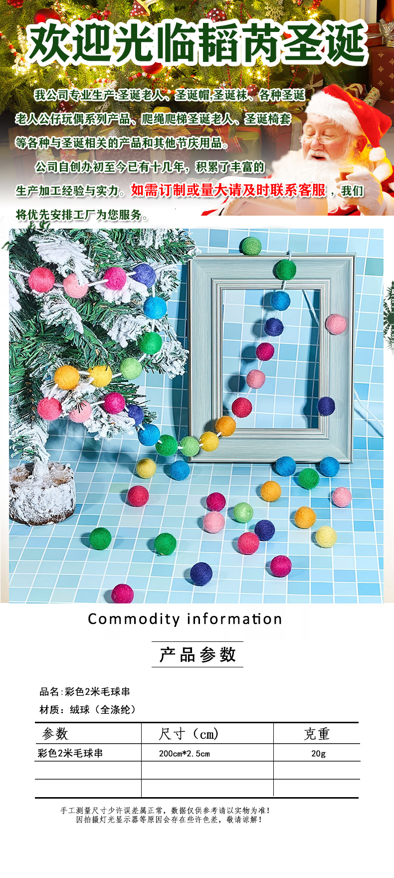 | Color | Cadena de bolas de pelo de 2 metros de color (20 bolas) |