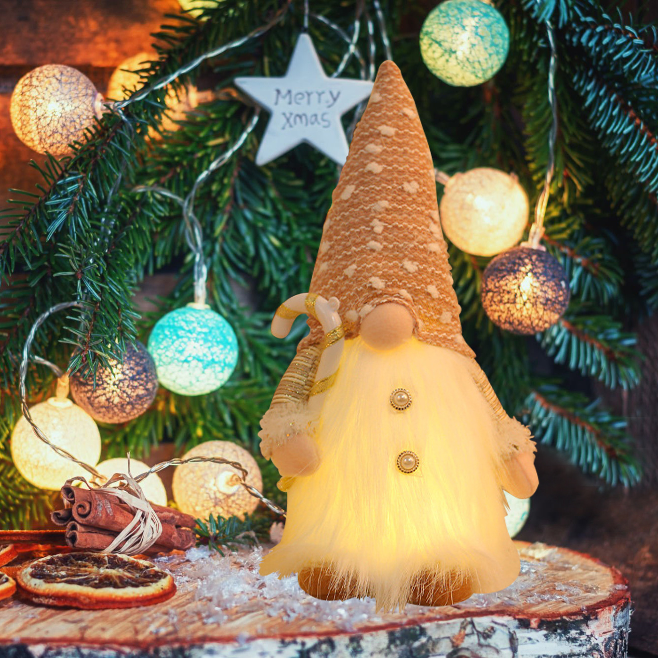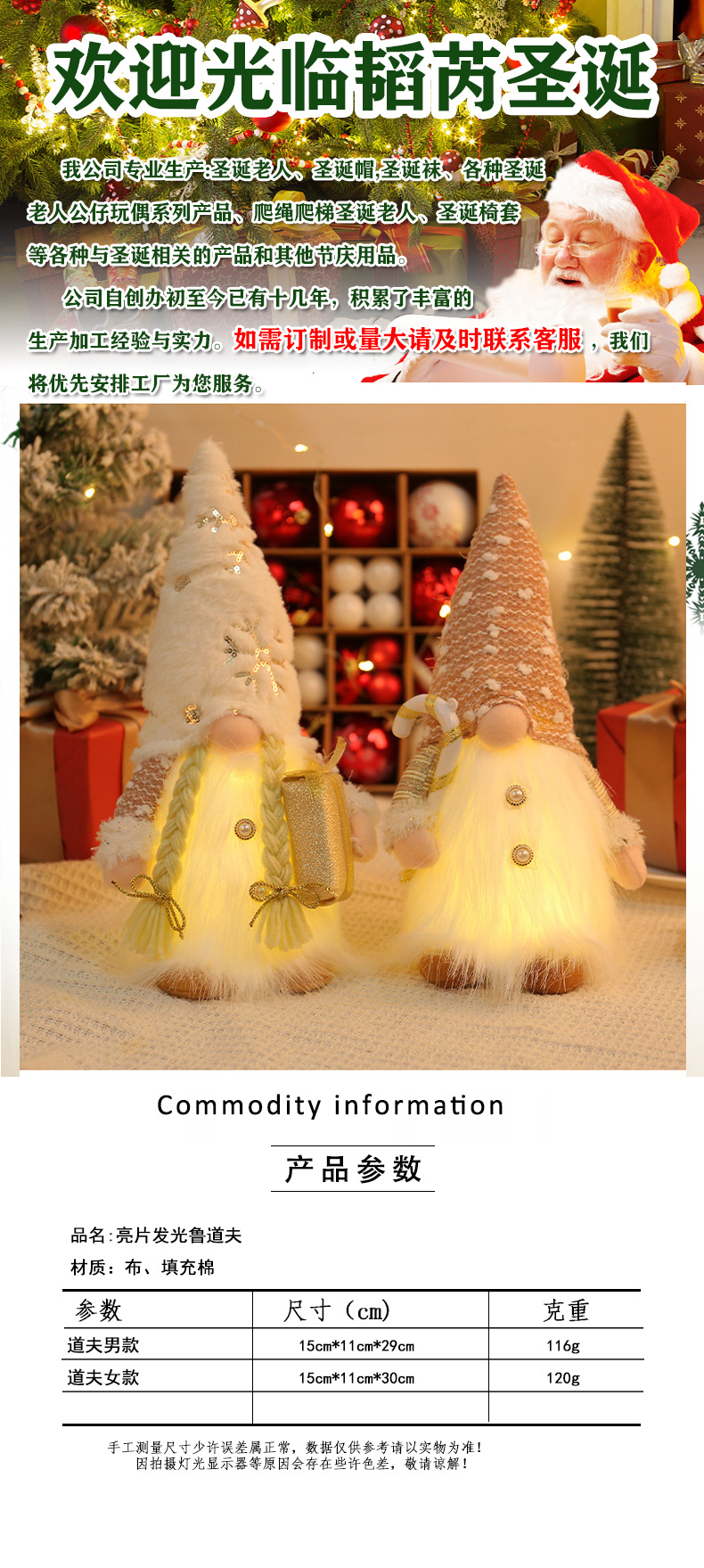 Navidad barba larga sombrero de peluche con luces para tomar regalos muletas con luces luminosas muñecas Rudolph decoración de ventanas