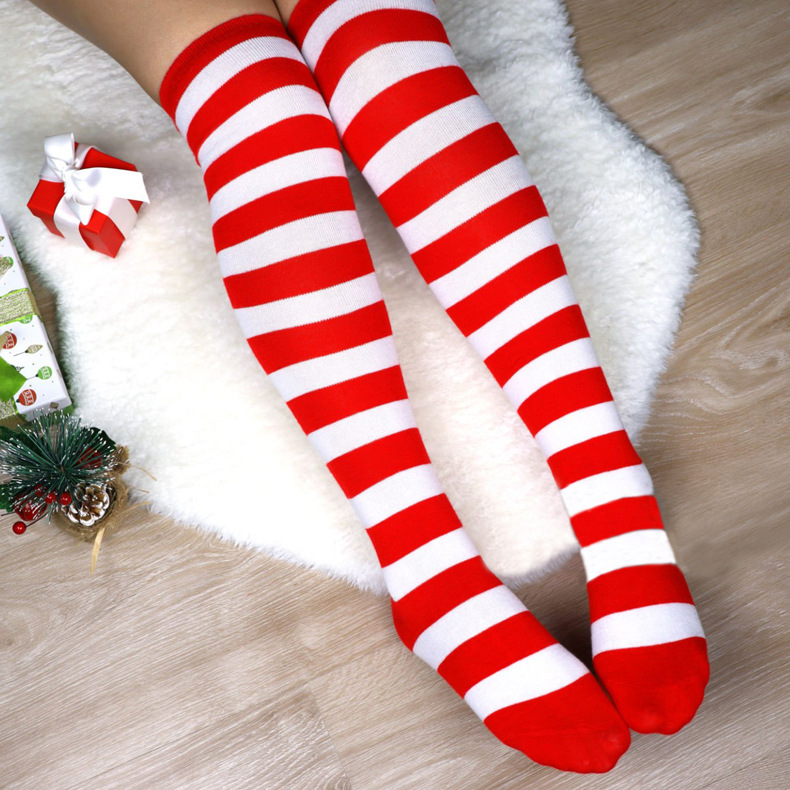 Medias a rayas europeas y americanas transfronterizas medias de rodillas a rayas de Navidad medias de muslo medias Cosplay animadas
