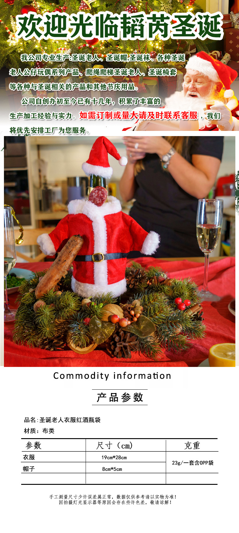 Vestido de Navidad transfronterizo cubierta de botella de vino creativo vinos de Navidad set decoración de mesa de comedor bolsa de botella de vino de Navidad al por mayor