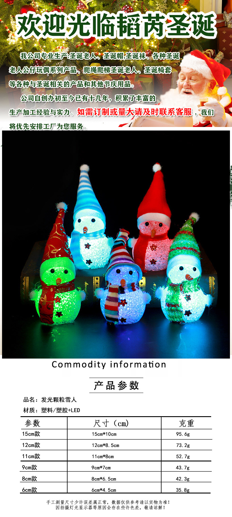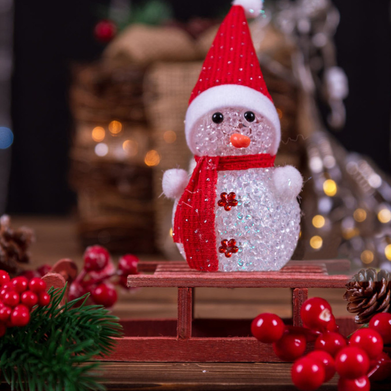 Transfronterizo luminoso muñeco de nieve decoración de Navidad Muñeca de nieve de plástico de cristal luminoso y colorido