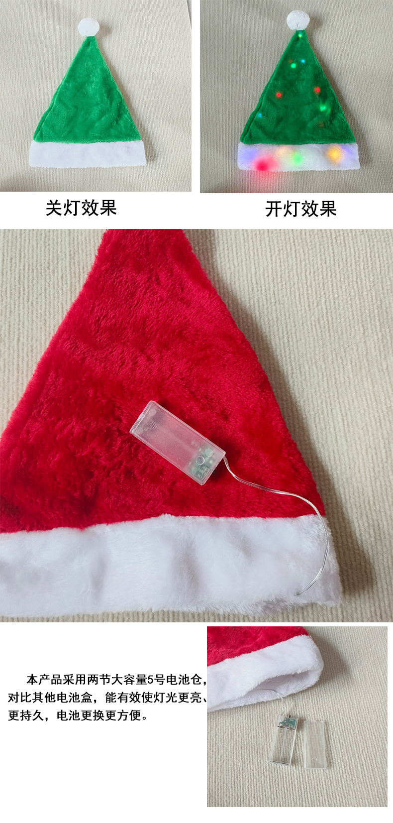 Nuevo sombrero de Navidad luminoso sombrero de regalo de Navidad decoración 5 caja de baterías sombrero de Navidad bola de pelo no brillante