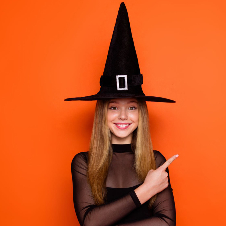 Sombrero de bruja de Halloween transfronterizo Sombrero de bruja negra Sombrero de bruja de ángulo recto Sombrero de bruja adulto Sombrero de brujo para niños Sombrero de brujo