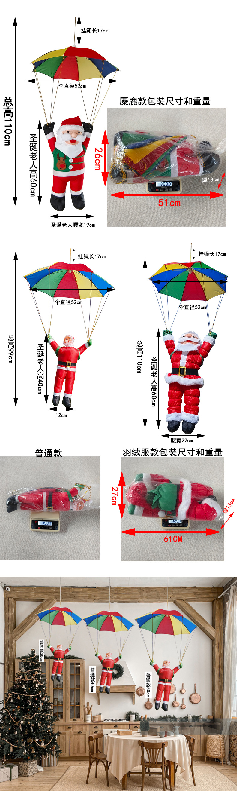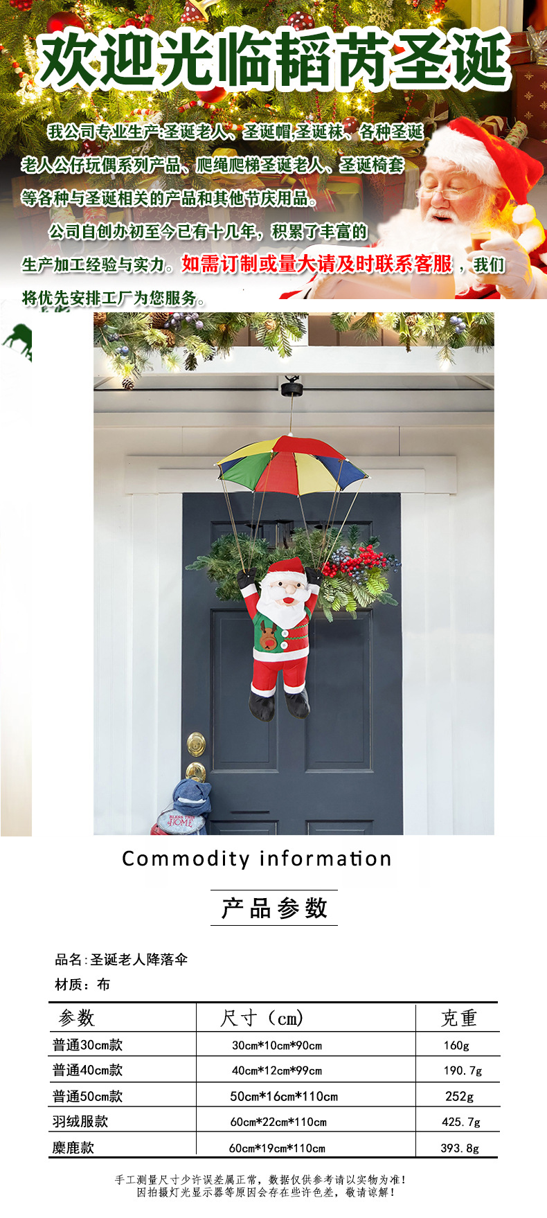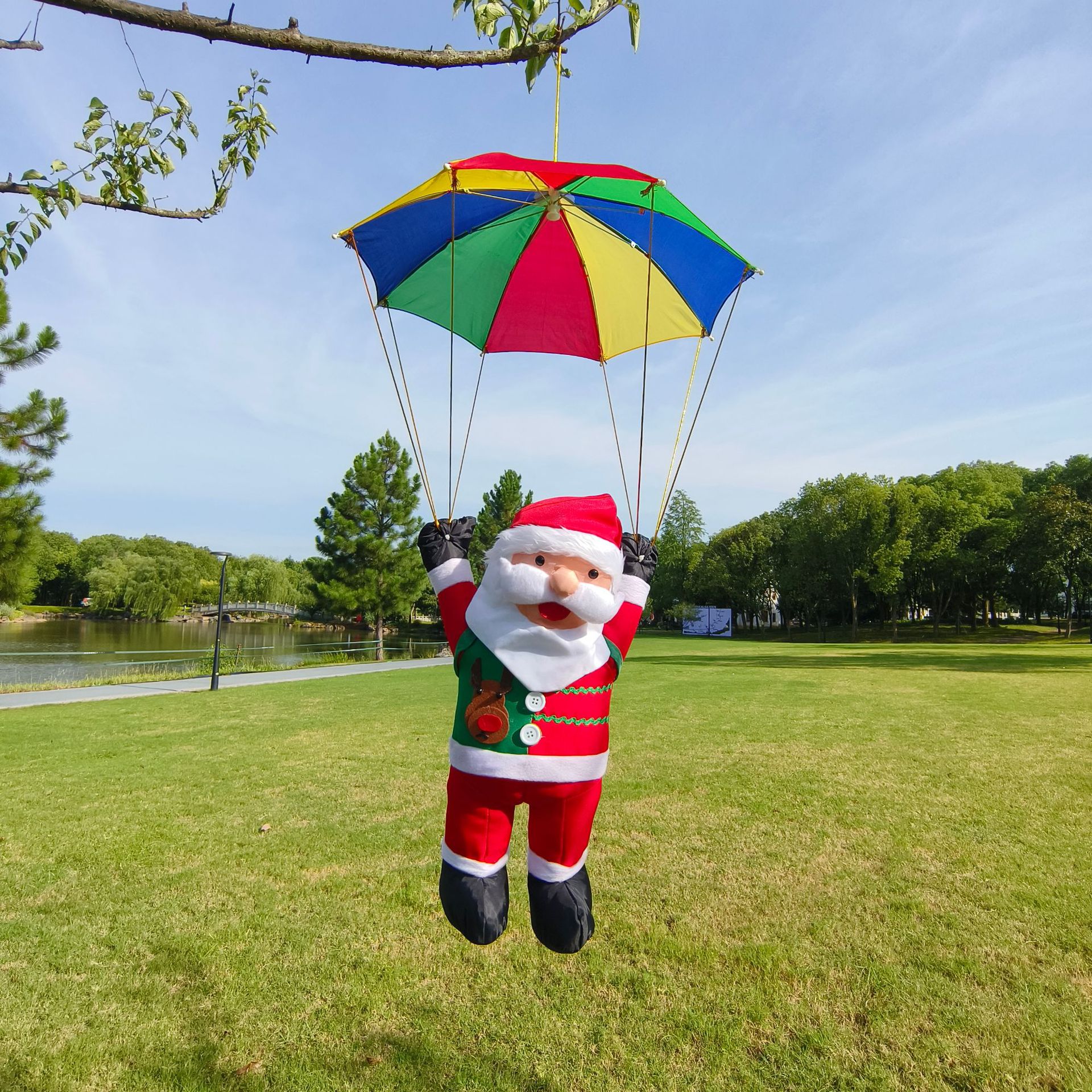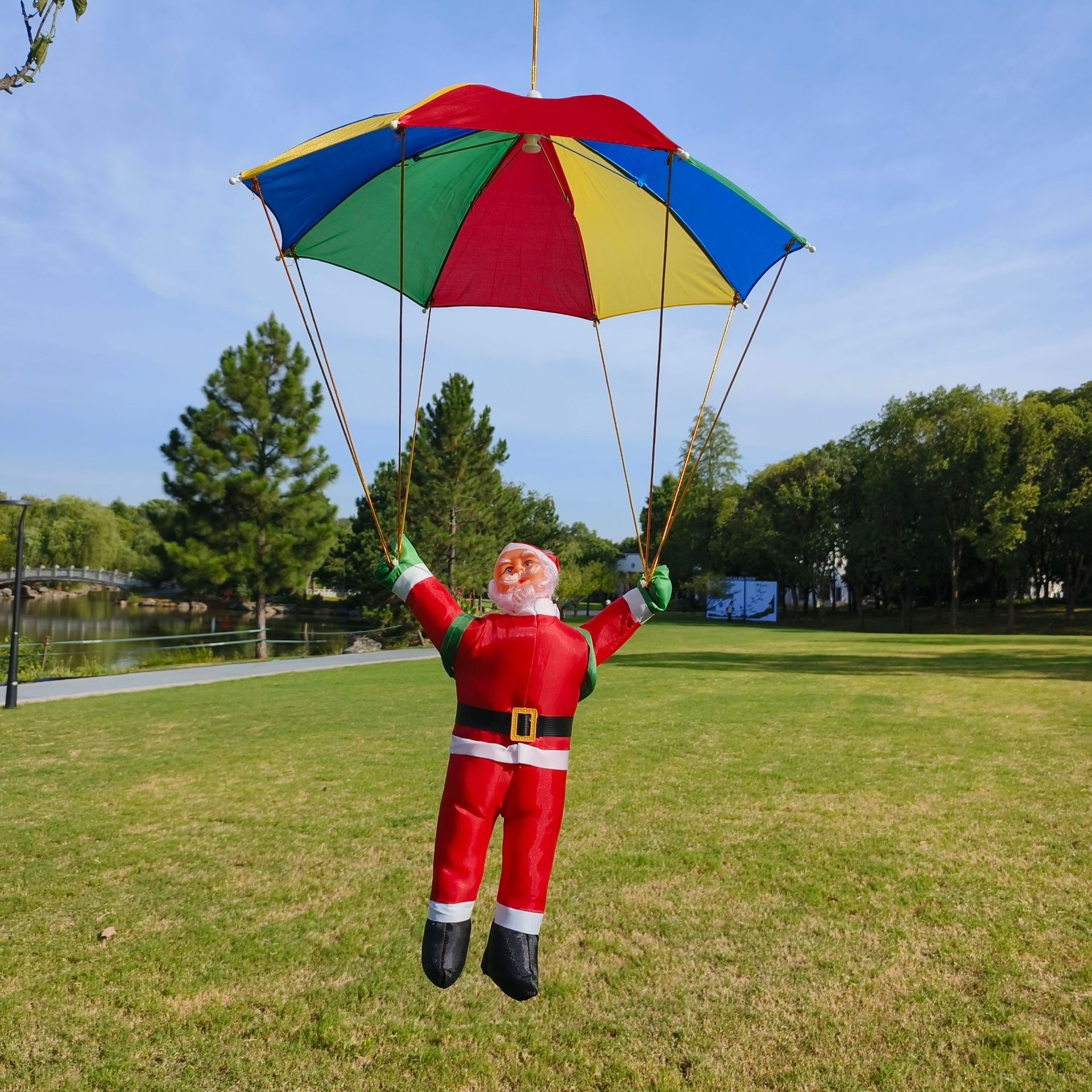 Nuevos productos transfronterizos paracaídas Santa Claus decoración supermercado de Navidad decoración paracaídas para el hogar Santa Claus