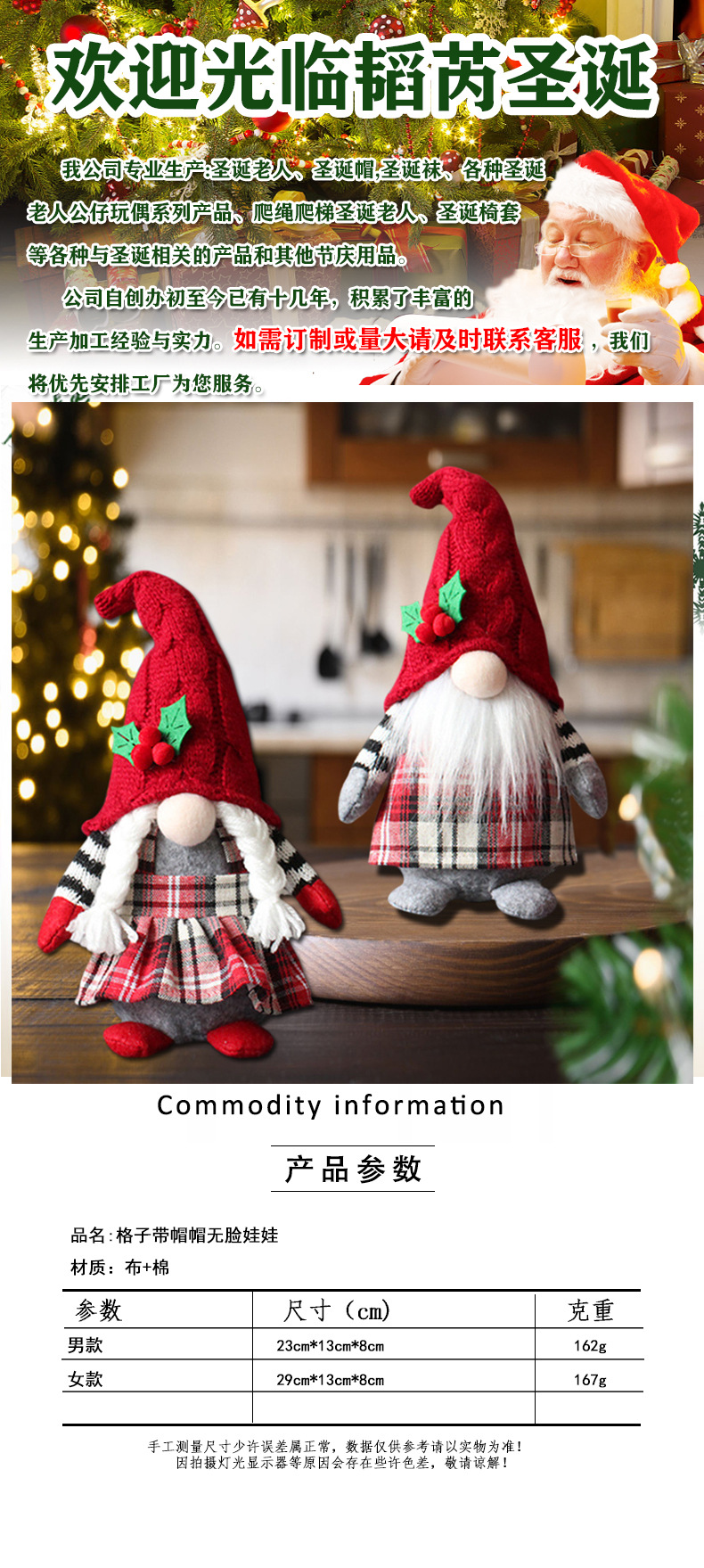 Decoraciones de Navidad transfronterizas hojas creativas adorables muñecas con sombrero decoraciones muñecas sin cara para ancianos