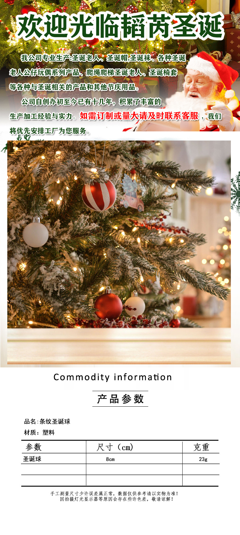 Bolas de Navidad a rayas transfronterizas 6PCS Navidad bola de plástico decoración colgante decoración de árbol de Navidad 8cm bolas de Navidad pintadas