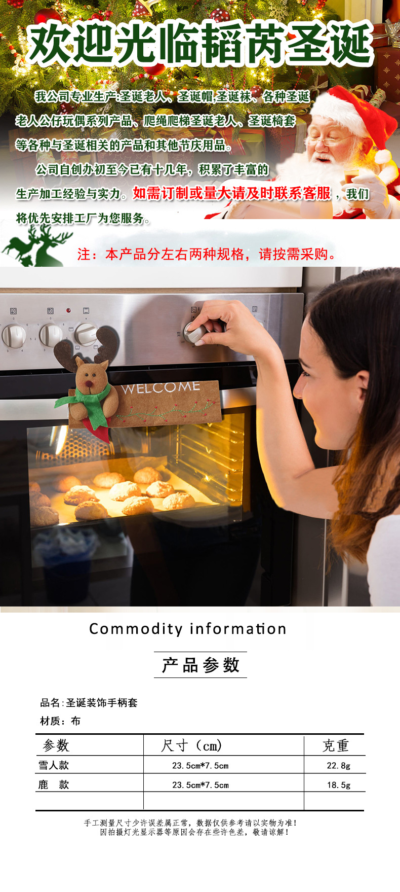Muñeco de nieve transfronterizo de Navidad cubierta de mango de decoración de Navidad refrigerador puerta de microondas guantes de brazo joyas de Navidad alce