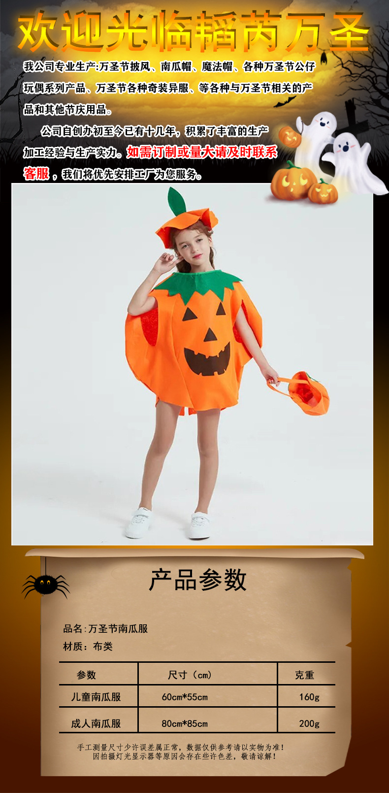 Halloween ropa de calabaza para niños y niñas vestido ropa de calabaza set espectáculo ropa de jardín de infantes ropa cos ropa