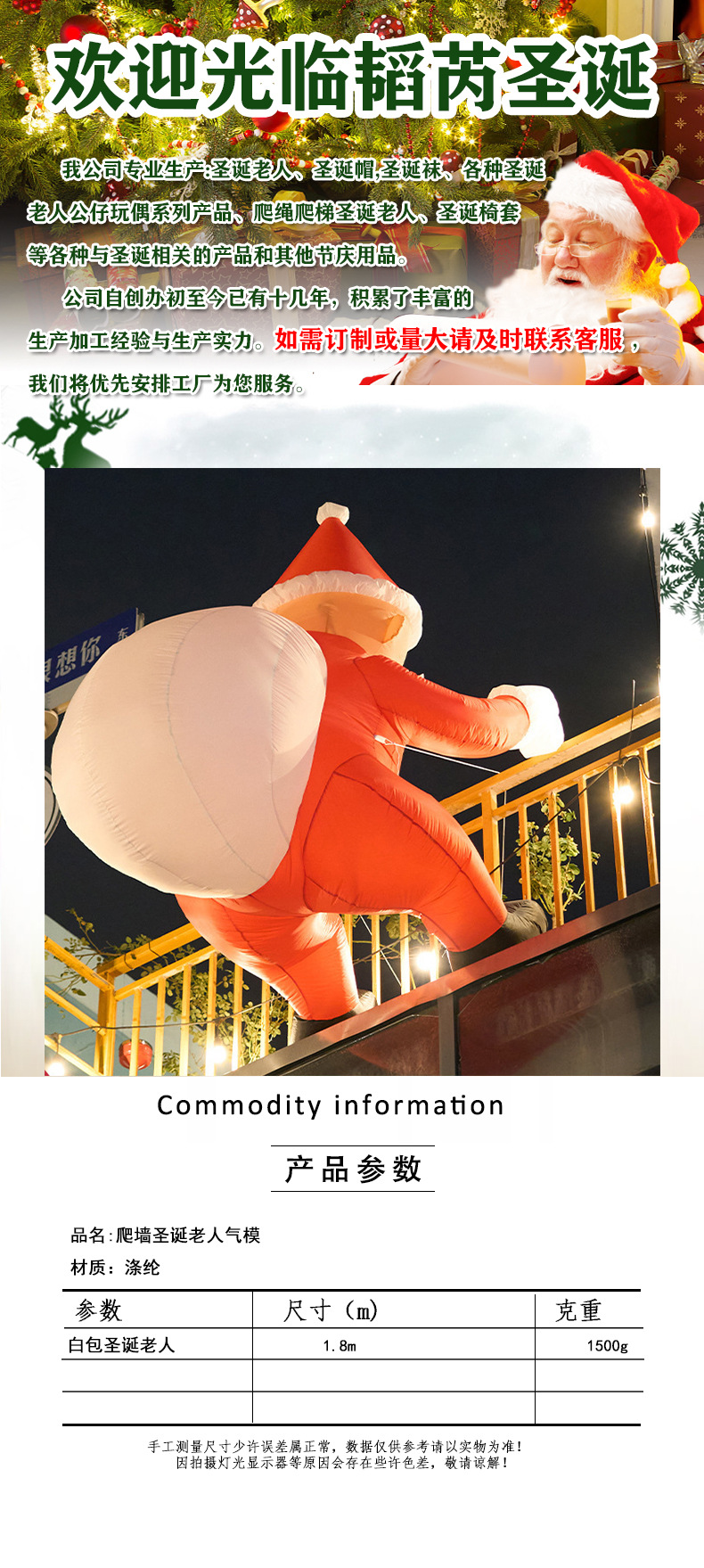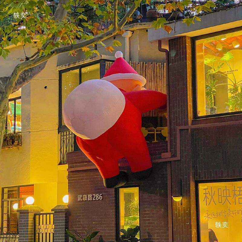 Navidad al aire libre escalada pared Santa Claus modelo de aire Navidad decoración escenas al aire libre bolsa blanca Santa Claus