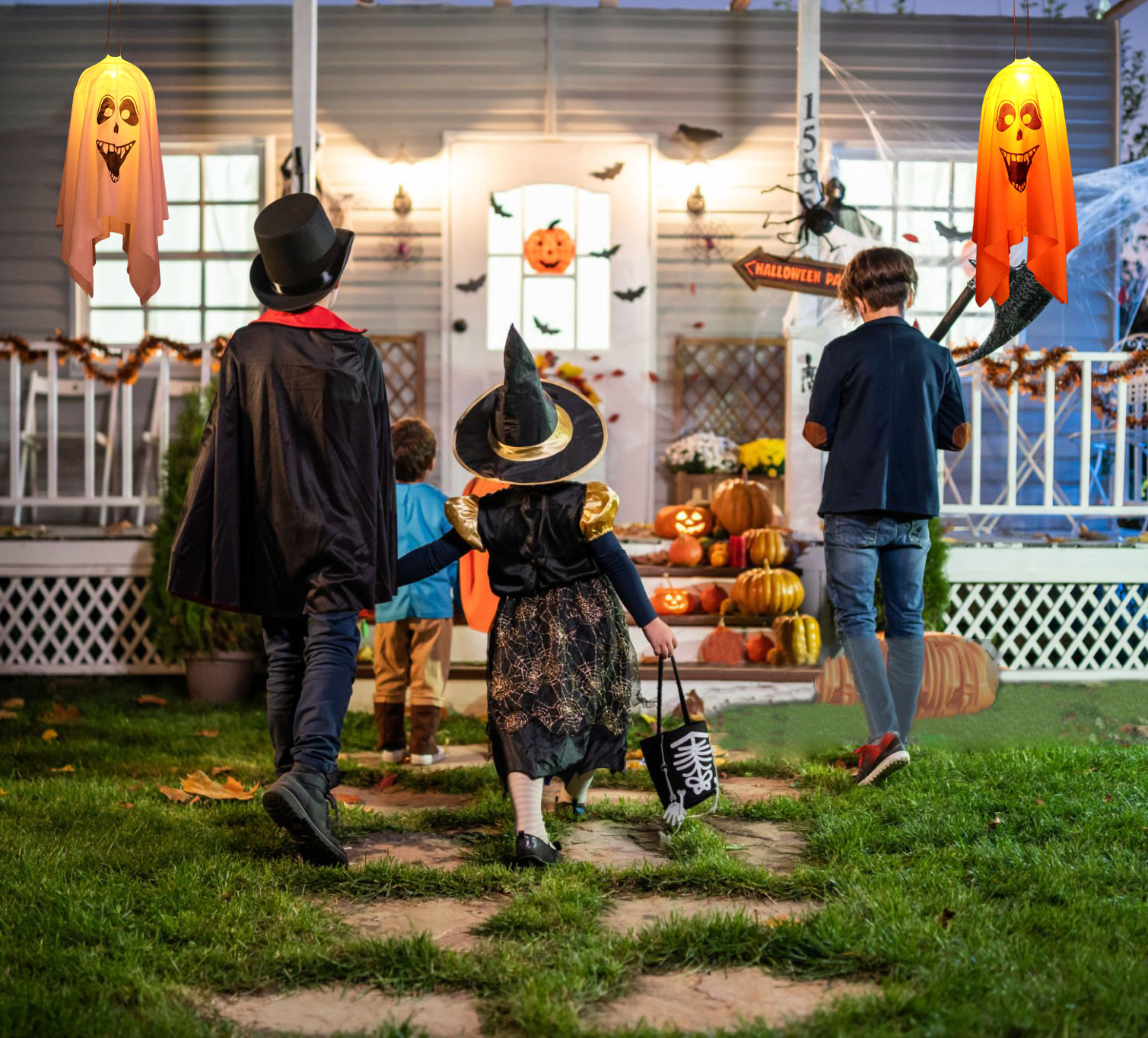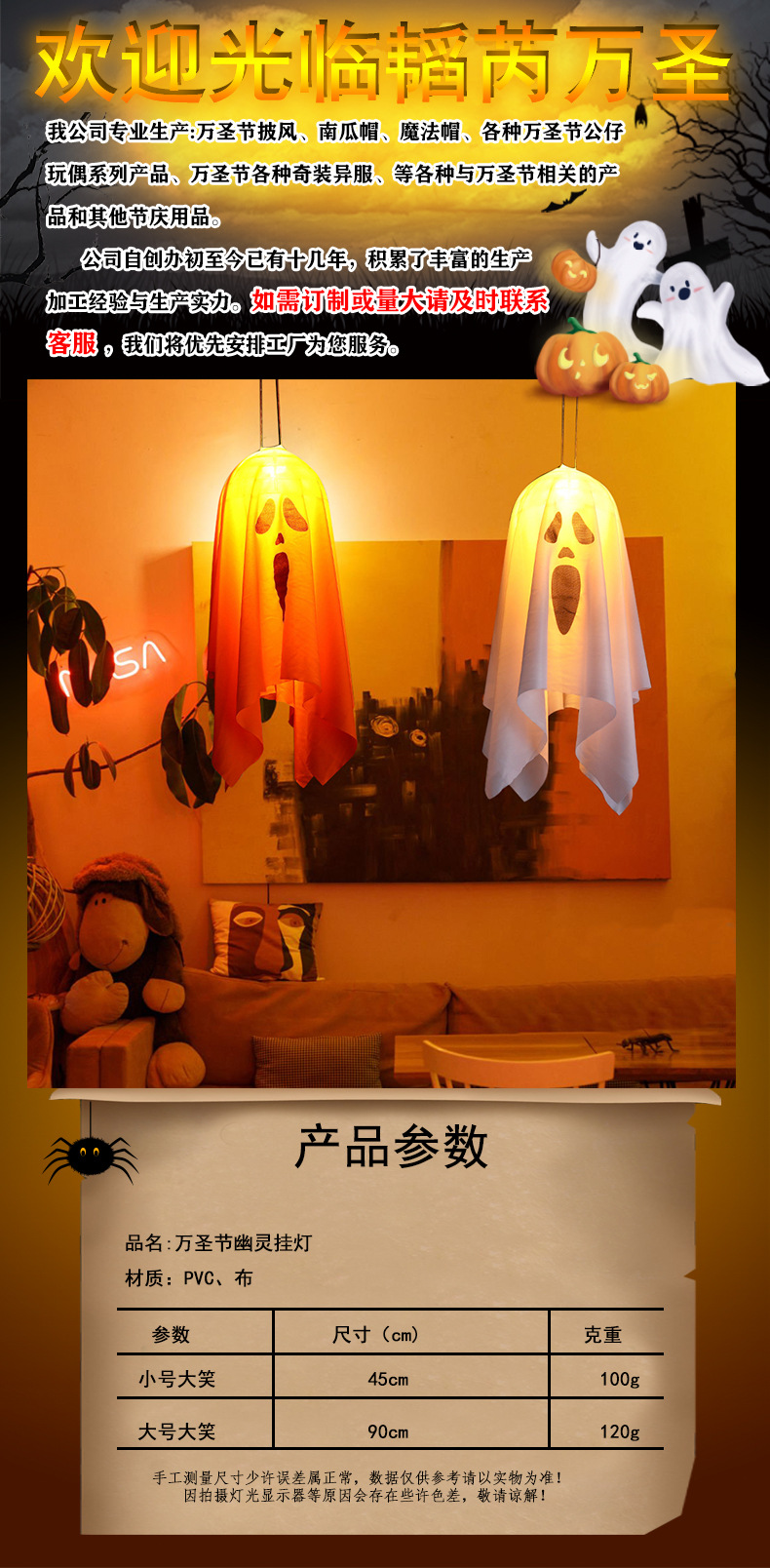 Decoración transfronteriza de Halloween luces LED de color para decoración de Halloween atmósfera colgante ajustable fantasma, fantasma de la luz colgante