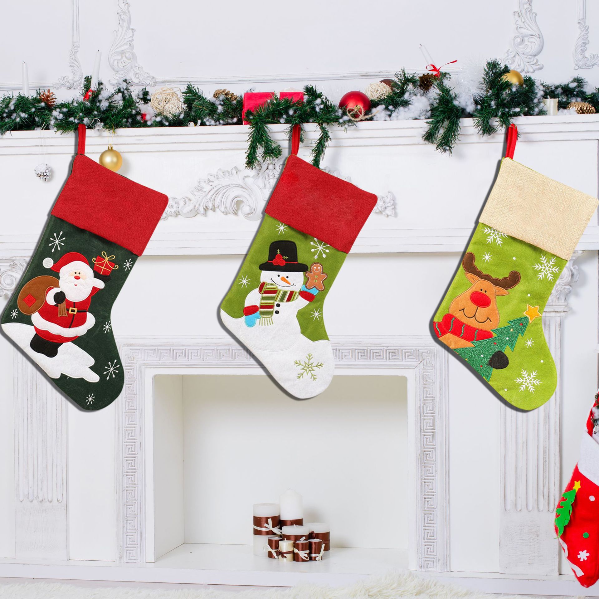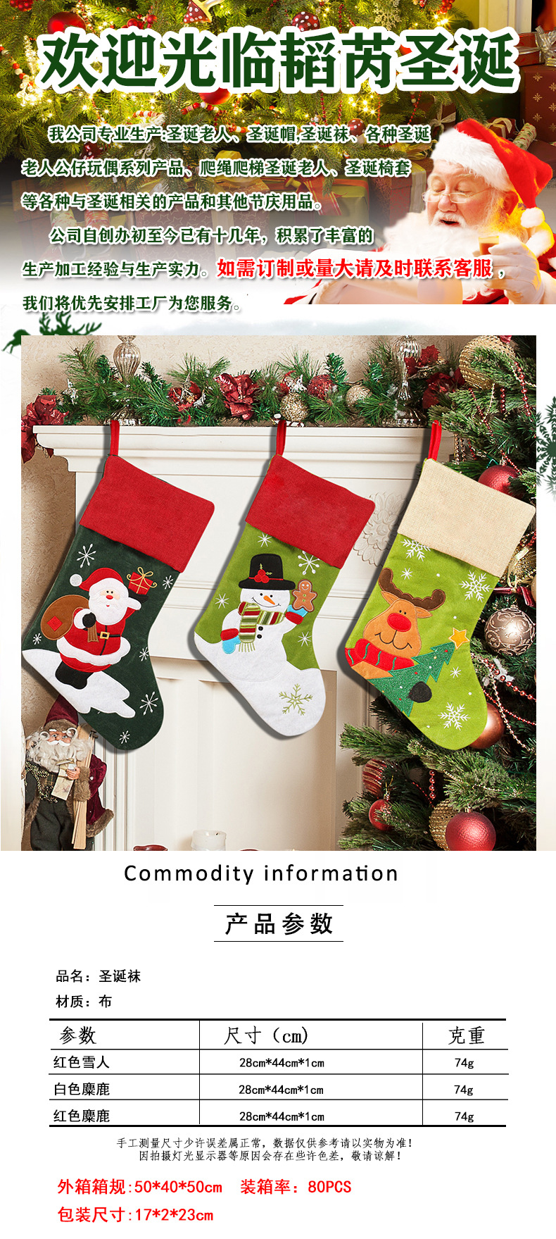 Nuevas bolsas de regalo de calcetines de Navidad transfronterizas lino Papá Noel bordado calcetines de Navidad bolsas de regalo de dulces de Navidad para niños