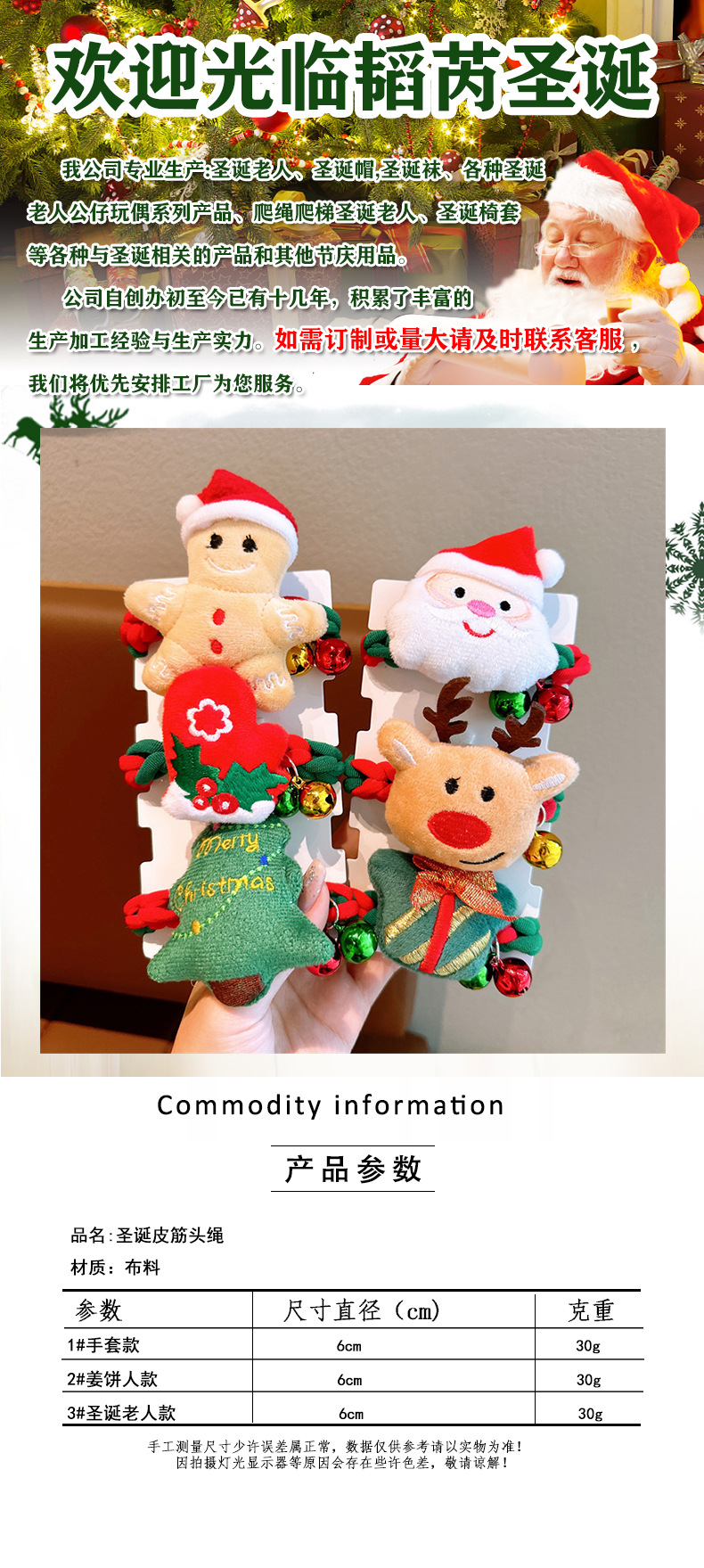 Navidad transfronteriza joyas para el cabello de Papá Noel adolescente trenzando el cabello anillo de pelo cabeza de bola de alta elasticidad correa de goma para niños