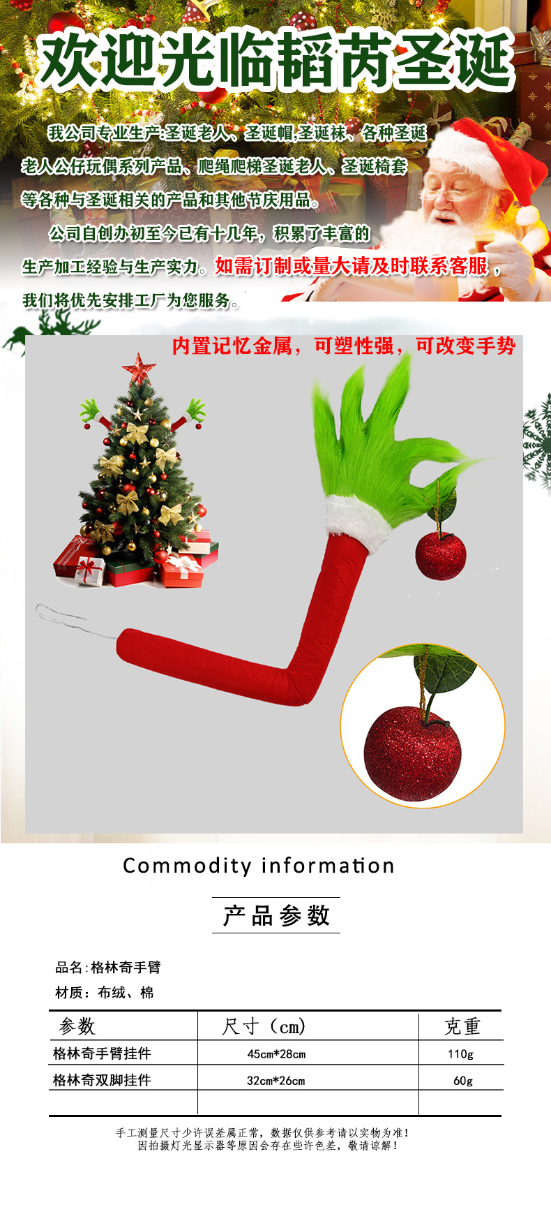 Cross-border Grinch brazo colgante Grinch elfo pierna árbol de Navidad Grinch brazo decoración colgante