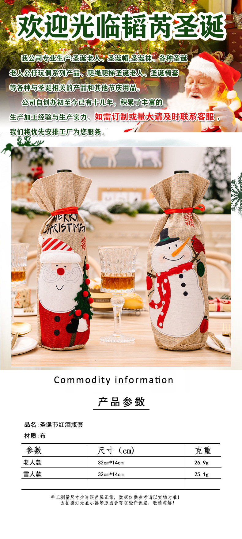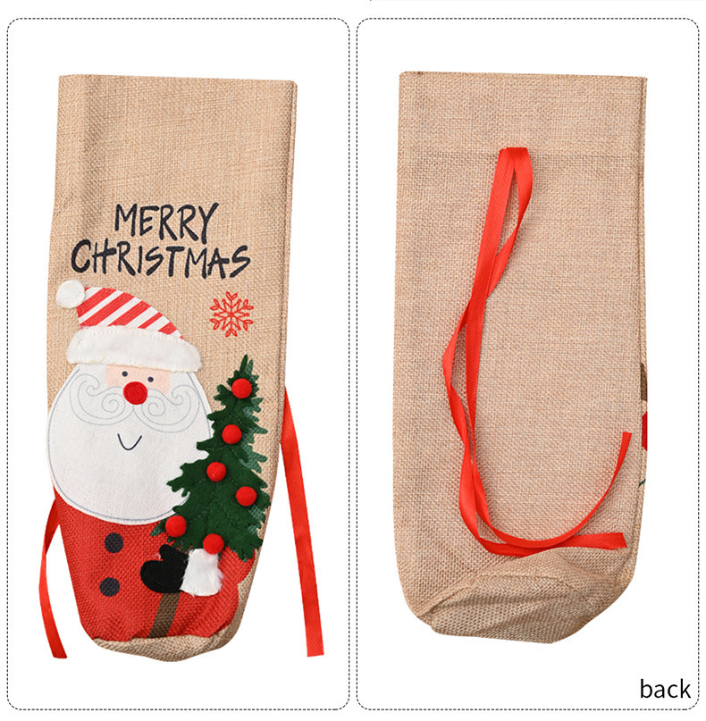 Navidad transfronteriza botella de vino nuevo lienzo bordado botella de vino viejos muñeco de nieve decoración de mesa de Navidad