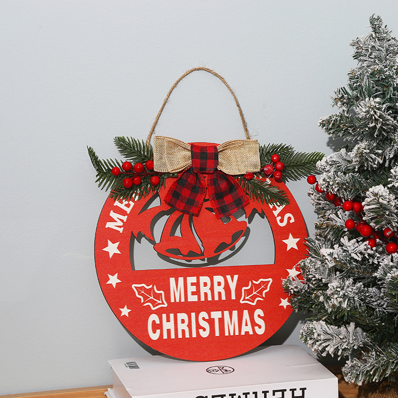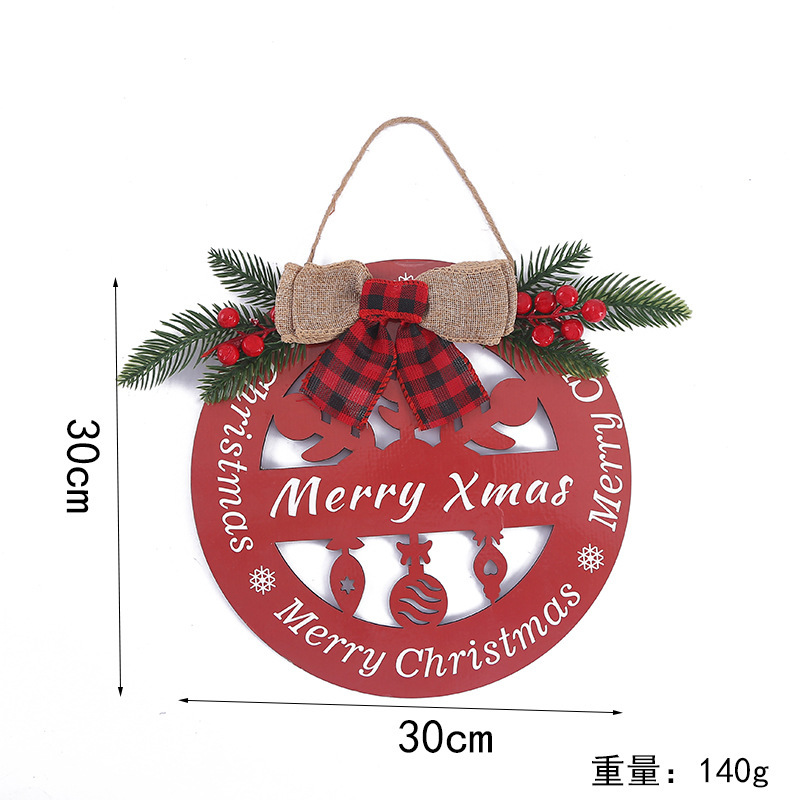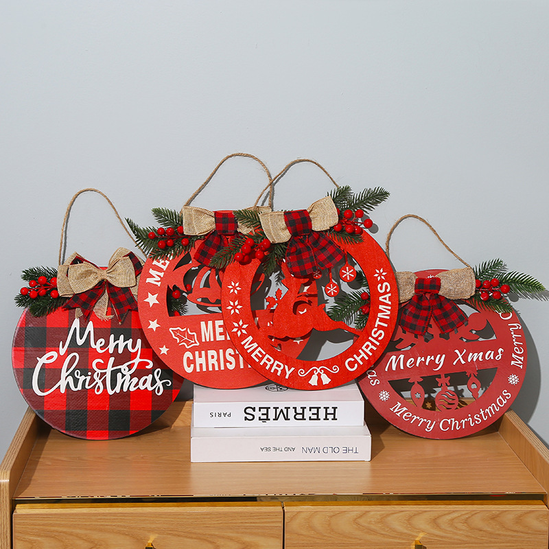 Navidad transfronteriza madera hueco lista de pared redonda roja decoración de la puerta colgante creativo de Navidad al por mayor
