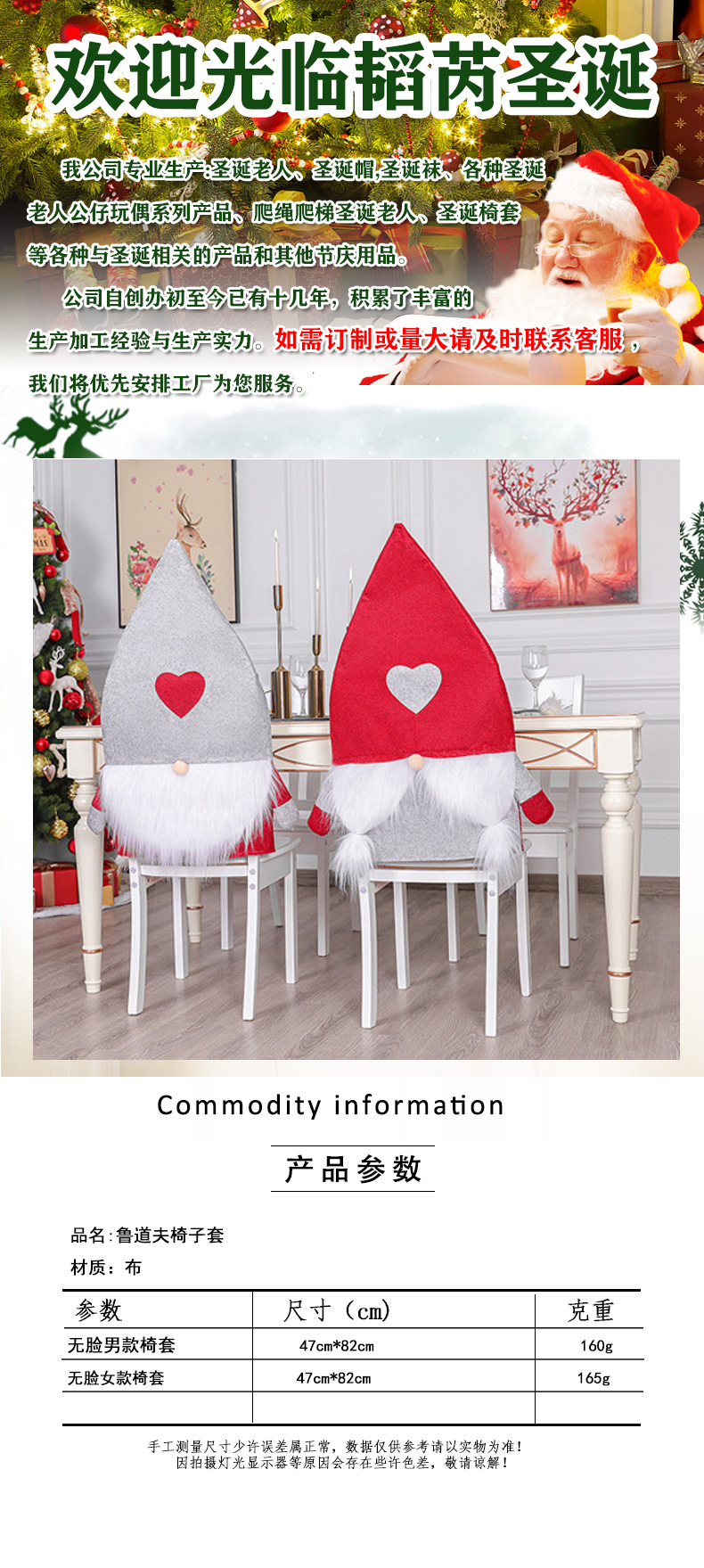 Cubierta de silla de decoración de Navidad transfronteriza amor muñeca sin cara Rudolph cubierta de silla de Navidad en el hogar restaurante cubierta de hotel
