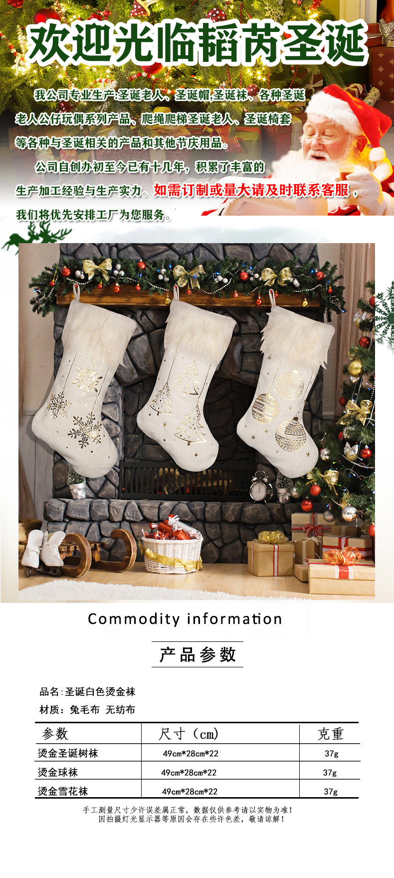 Calcetines de Navidad transfronterizos blancos estampados calcetines de Navidad bolsas de regalo calcetines de decoración de Navidad bolsas de regalo bolsas de dulces para niños