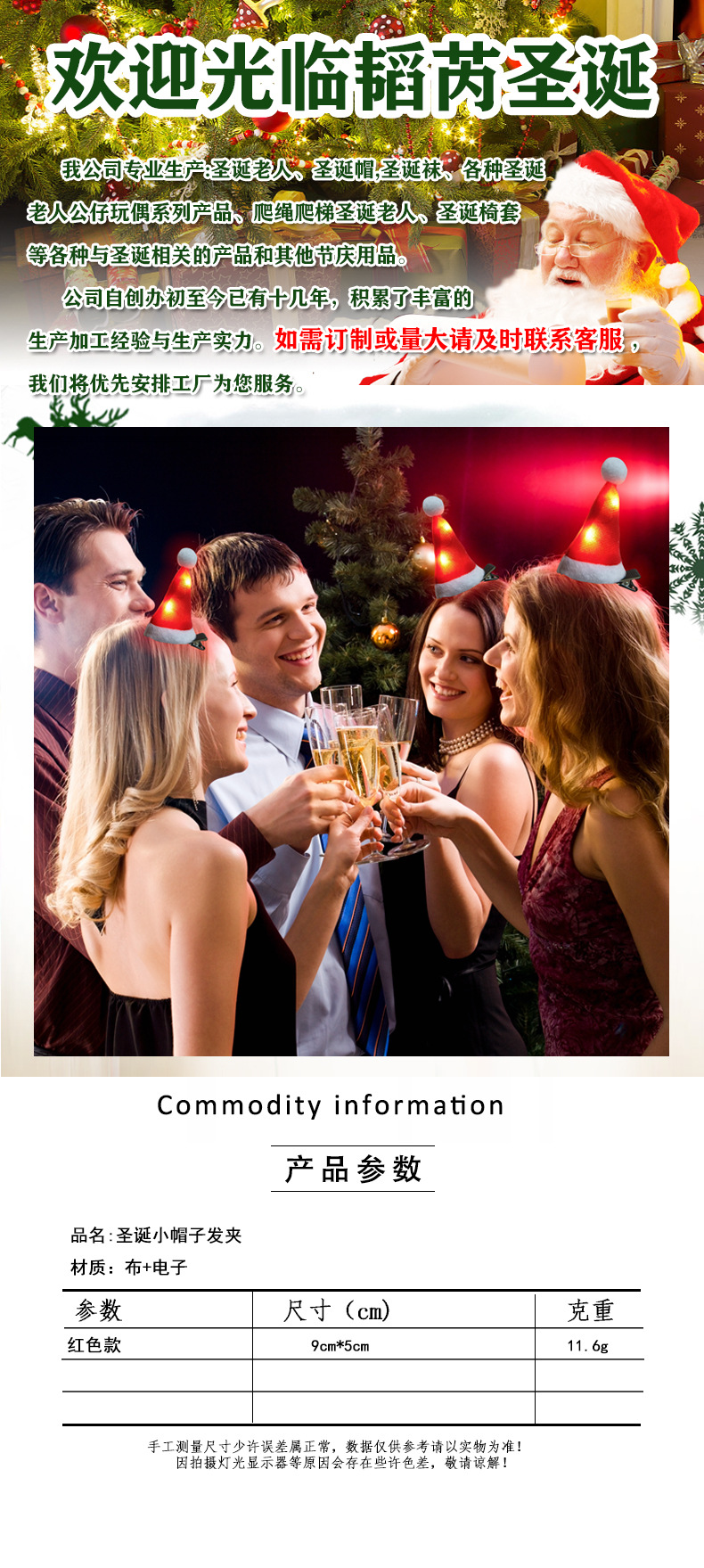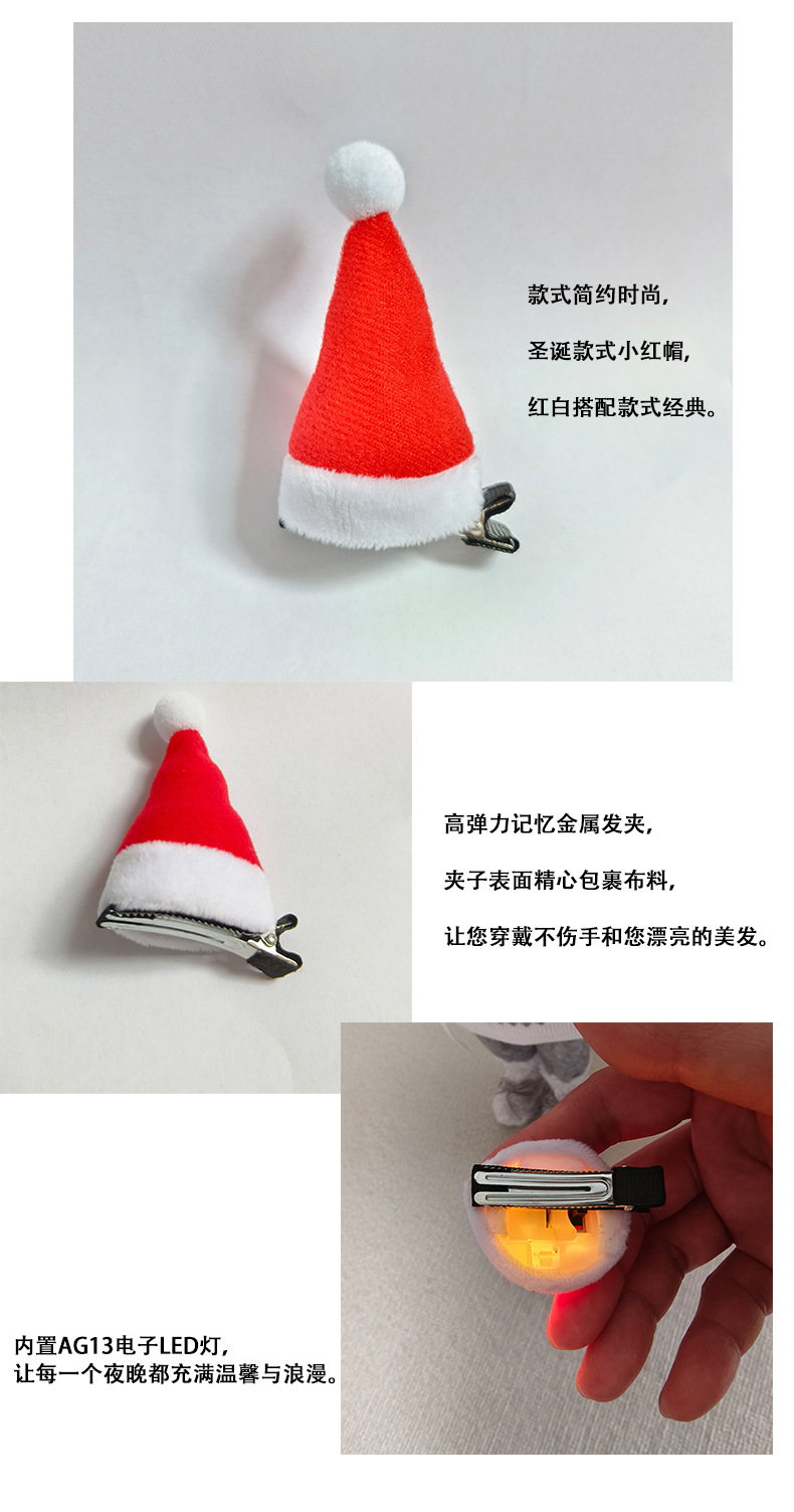 Cross-border nuevo sombrero de Navidad brocas de pelo LED brillante lindo tocado de Navidad vestir atmósfera pequeña brocas de pelo LED