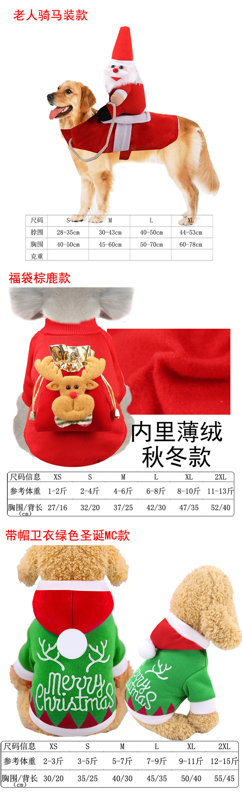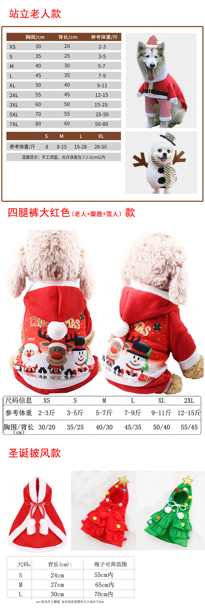 | Color | Dos juegos para ancianos de pie, pantalones de cuatro piernas de gran rojo (anciano + alce + muñeco de nieve), capa de belleza navideña de gran rojo, capa de árbol de Navidad verde, capa de árbol de Navidad rojo, cara de ciervo de peluche verde de dos piernas, cara de ciervo de peluche rojo de dos piernas, perro grande - traje de equitación rojo de anciano súper grande, ciervo marrón de bolsa de bendición (suéter rojo de dos piernas, suéter de sombrero verde MC de Navidad |