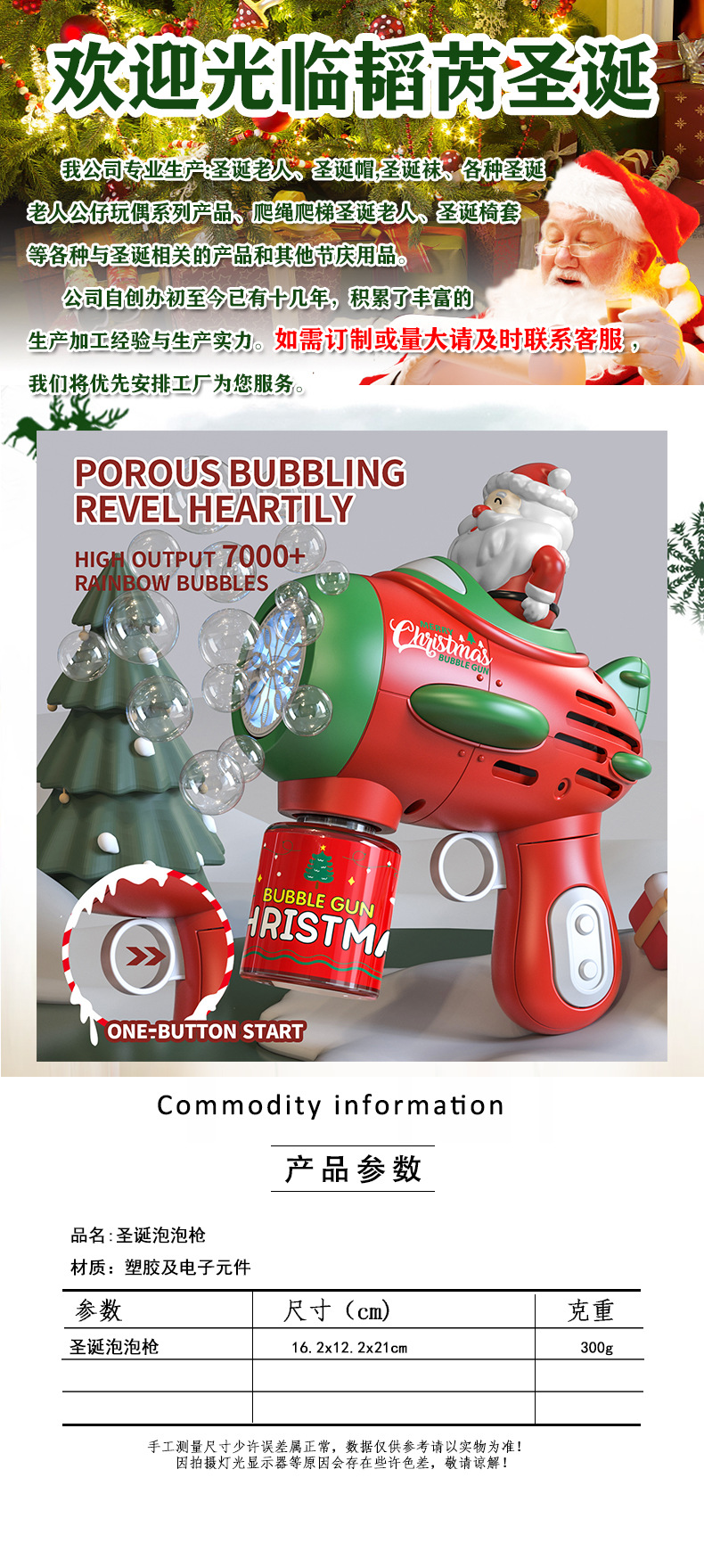 Pistola de burbujas de Navidad transfronteriza, burbujas de soplado eléctricas para niños, máquina de burbujas automática, pistola de burbujas de Navidad, Santa Claus