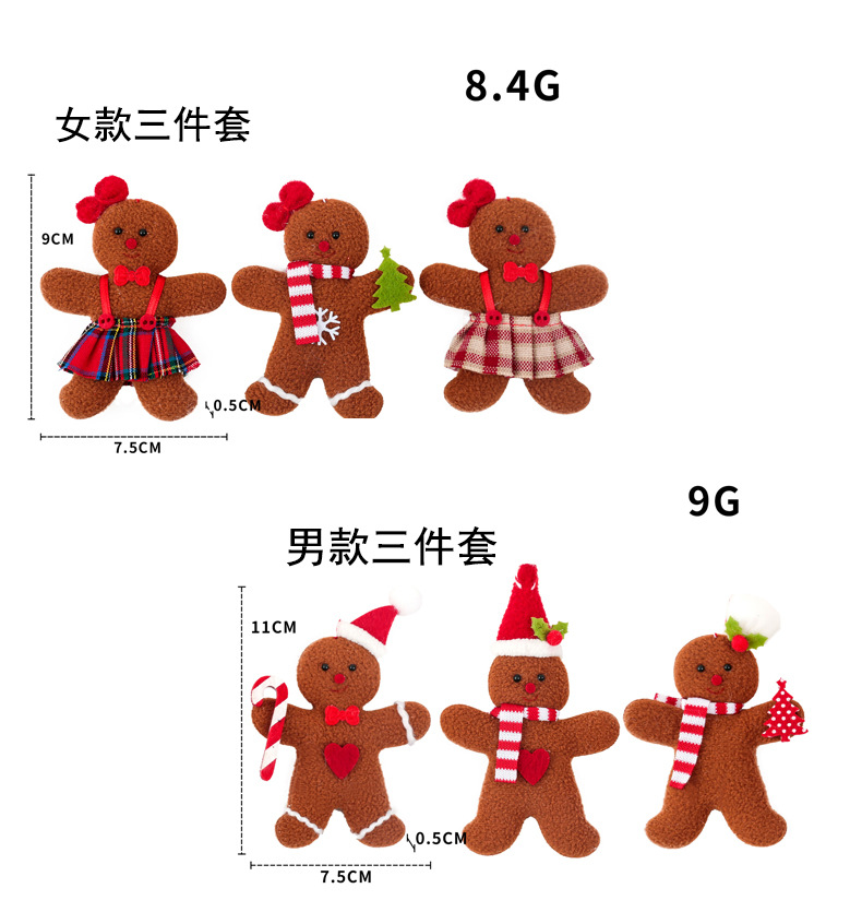 Nuevos productos creativos transfronterizos Navidad decoración pan de jengibre muñeca pequeña pieza colgante accesorios del árbol de Navidad colgante 3 piezas conjunto