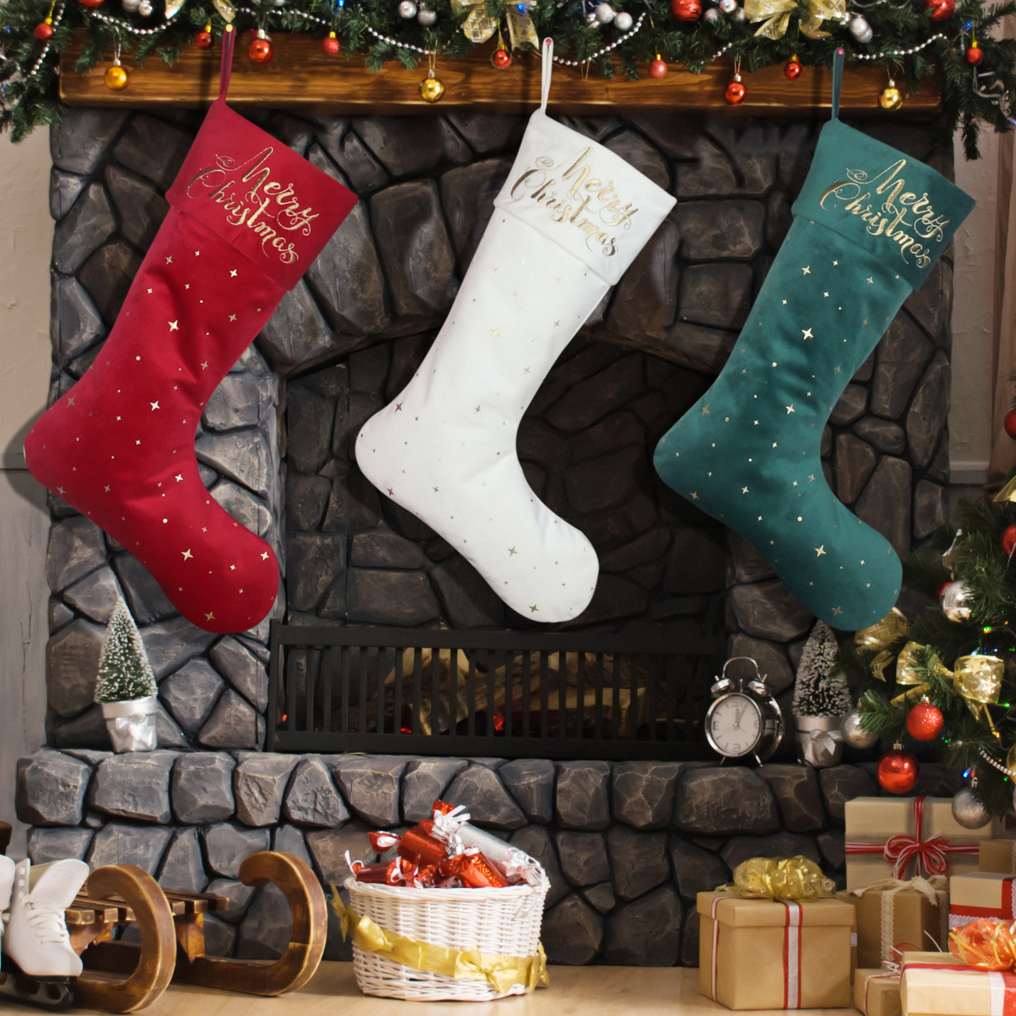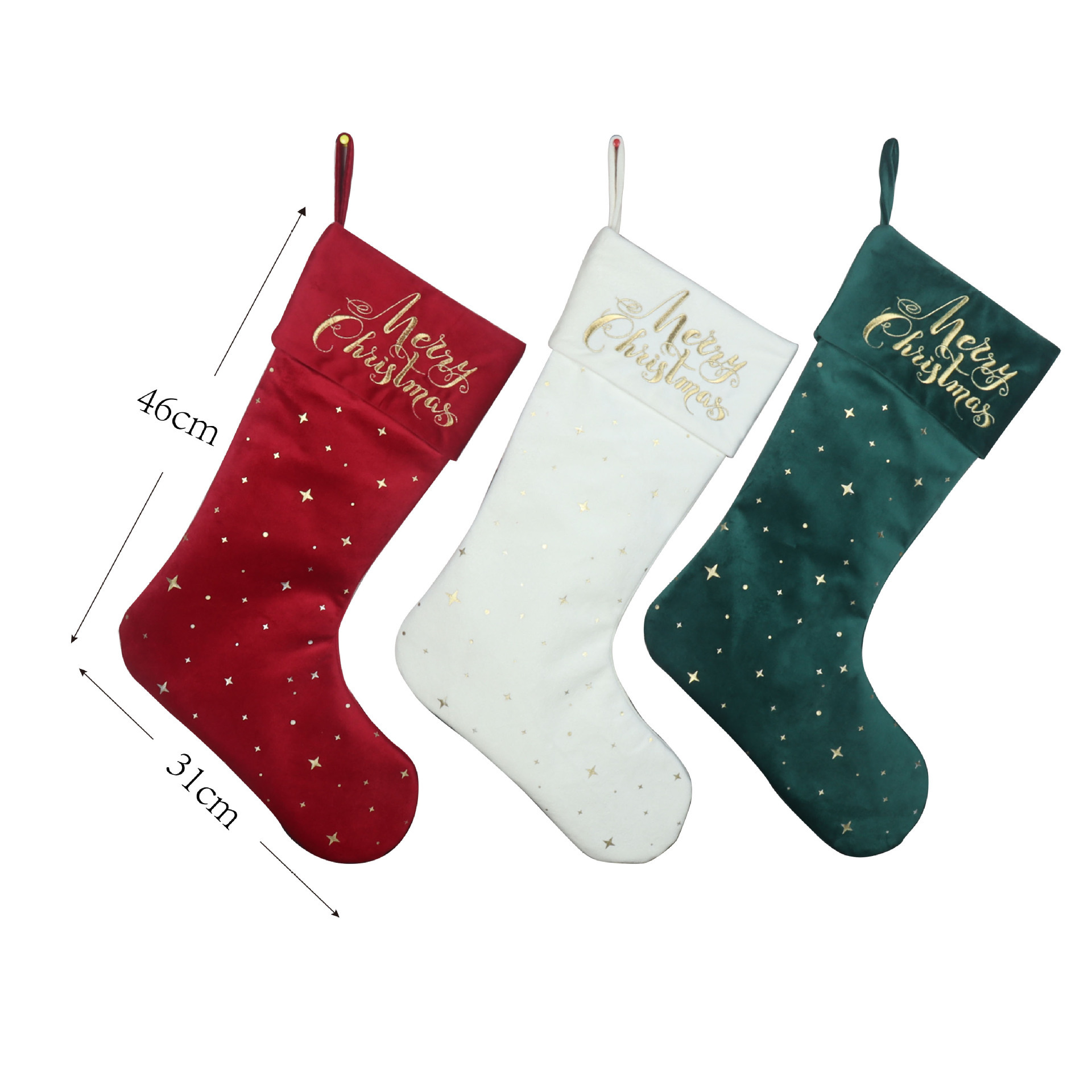 Calcetines de Navidad europeas y estadounidenses transfronterizas bolsas de regalo de Navidad bolsas de dulces de Navidad bordadas estampadas calcetines ingleses tres tipos