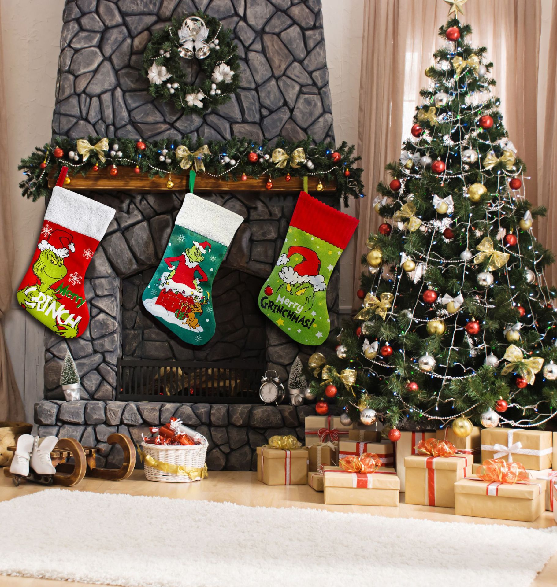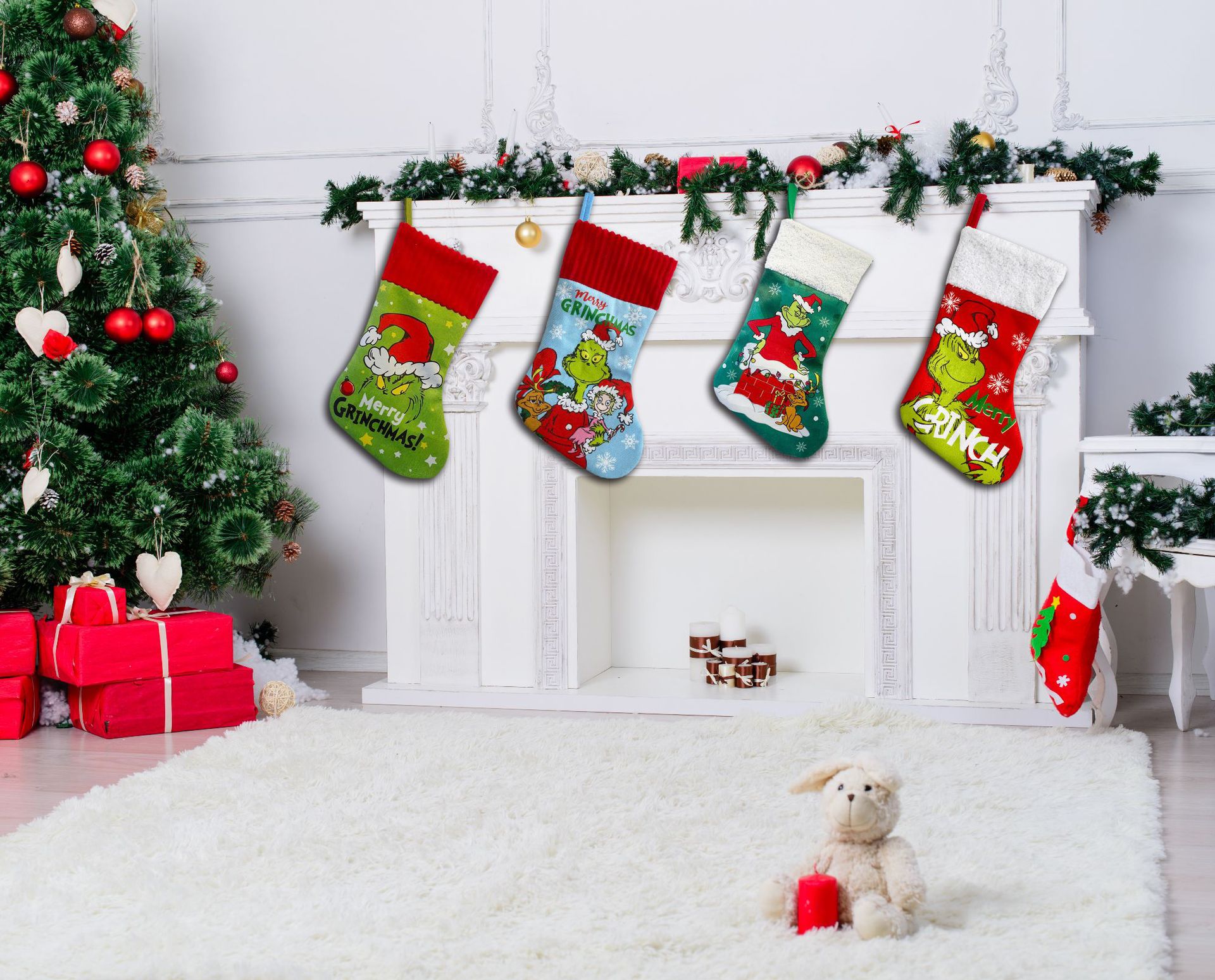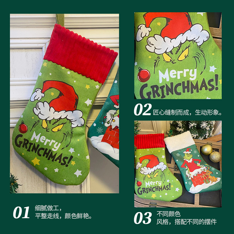 Medias de Navidad Navidad Medias de Navidad Grinch Bolsa de regalo Super suave Navidad Colgante Decoración de chimenea