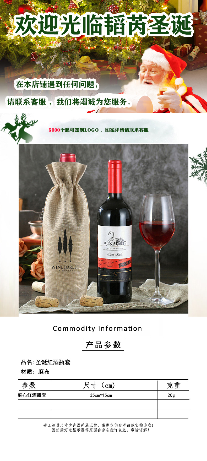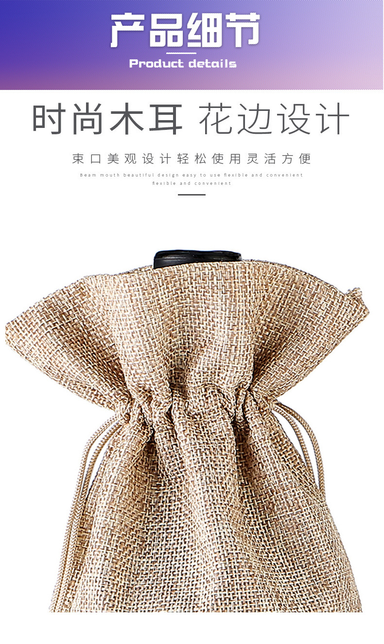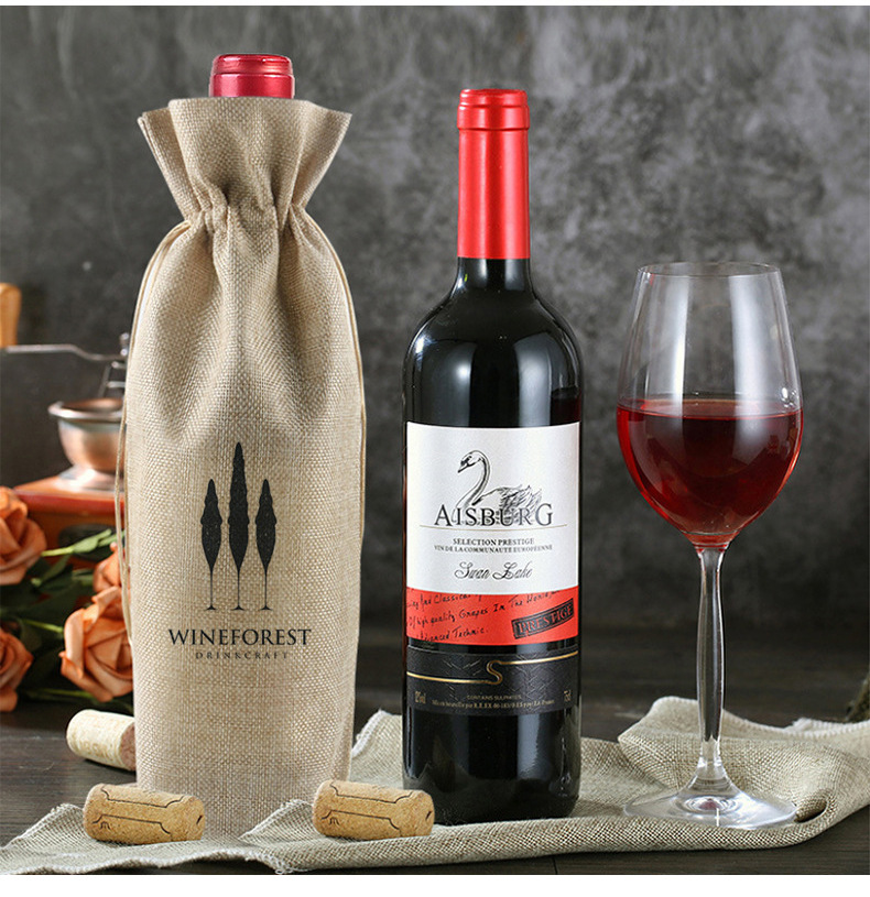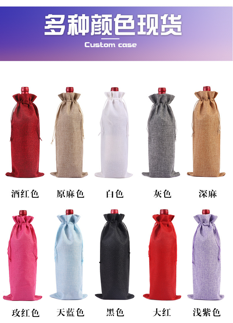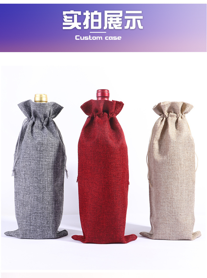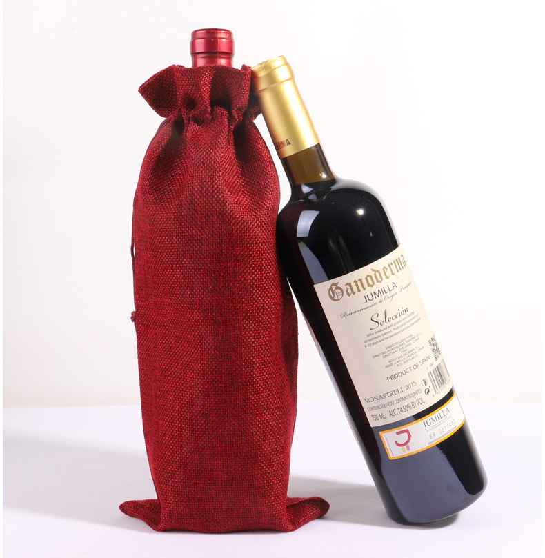 2024 Navidad lino bolsa de vino cubierta cuerda de tracción lino bolsa de botella de vino bolsa de lino bolsa de vino