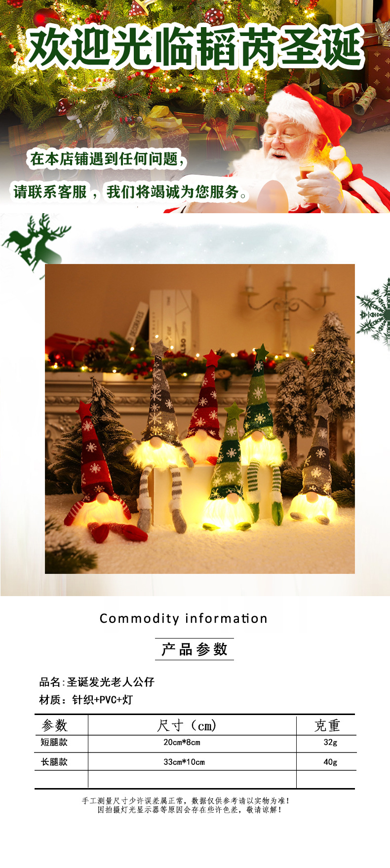2024 nueva ventana transfronteriza con luces luminosas muñeca de Papá Noel Rudolph muñeca sin cara gnomo duende