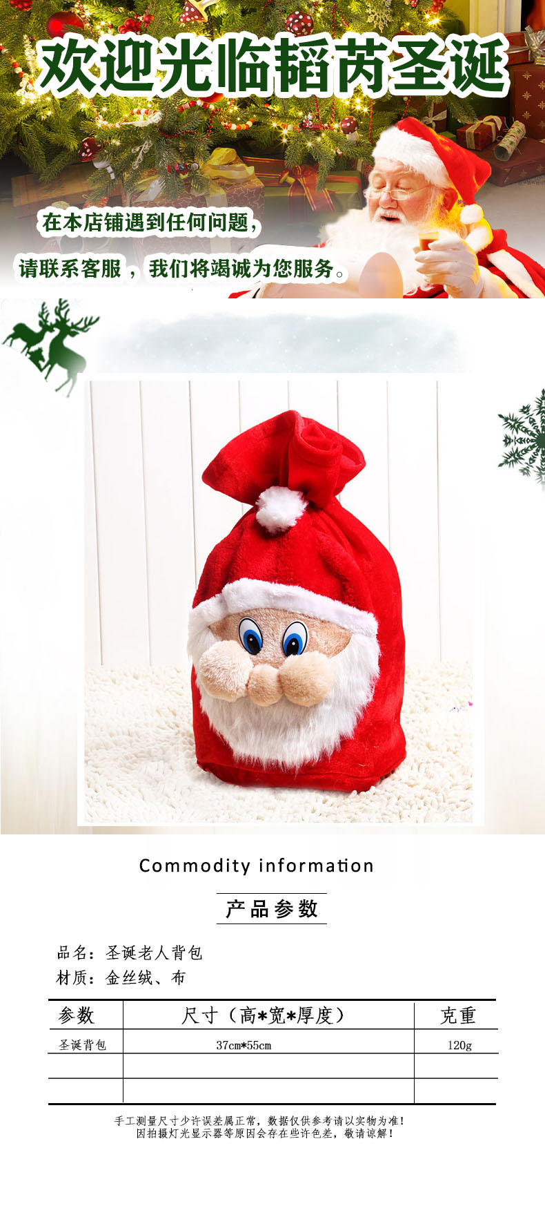 Navidad decoraciones bolsas de regalo de vello de oro de alta calidad bolsas de regalo grandes bolsas de dulces al por mayor