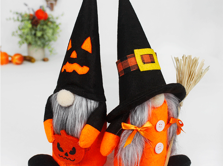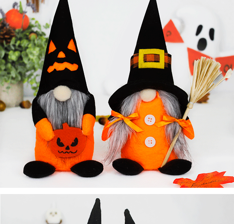 Transfronterizo nuevos suministros de decoración de halloween con calabaza muñeca sin rostro escoba muñeca enana adornos de decoración de fiesta