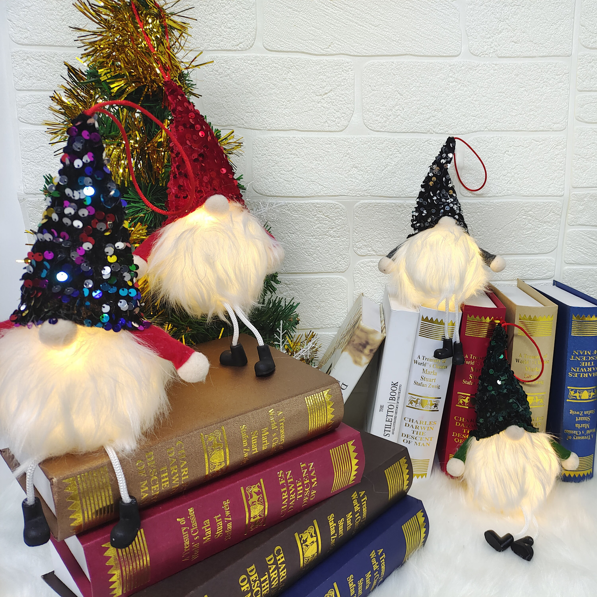 Nueva Navidad de la pierna larga muñeca sin rostro muñeca colgante con luz que emite la muñeca perlas sombrero enano bosque hombre