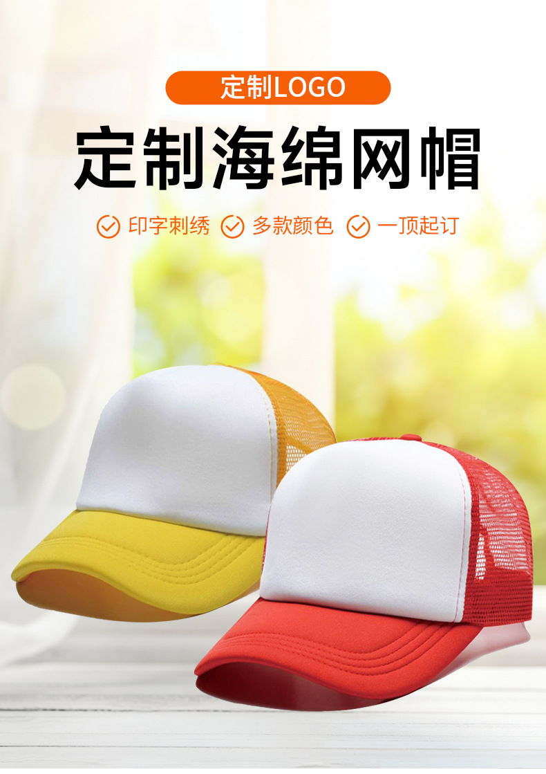 Gorra de malla de esponja gorra de publicidad impresión gorra de béisbol para adultos panel de luz a juego de color gorra de trabajo transpirable viaje protección solar sombrero para el sol