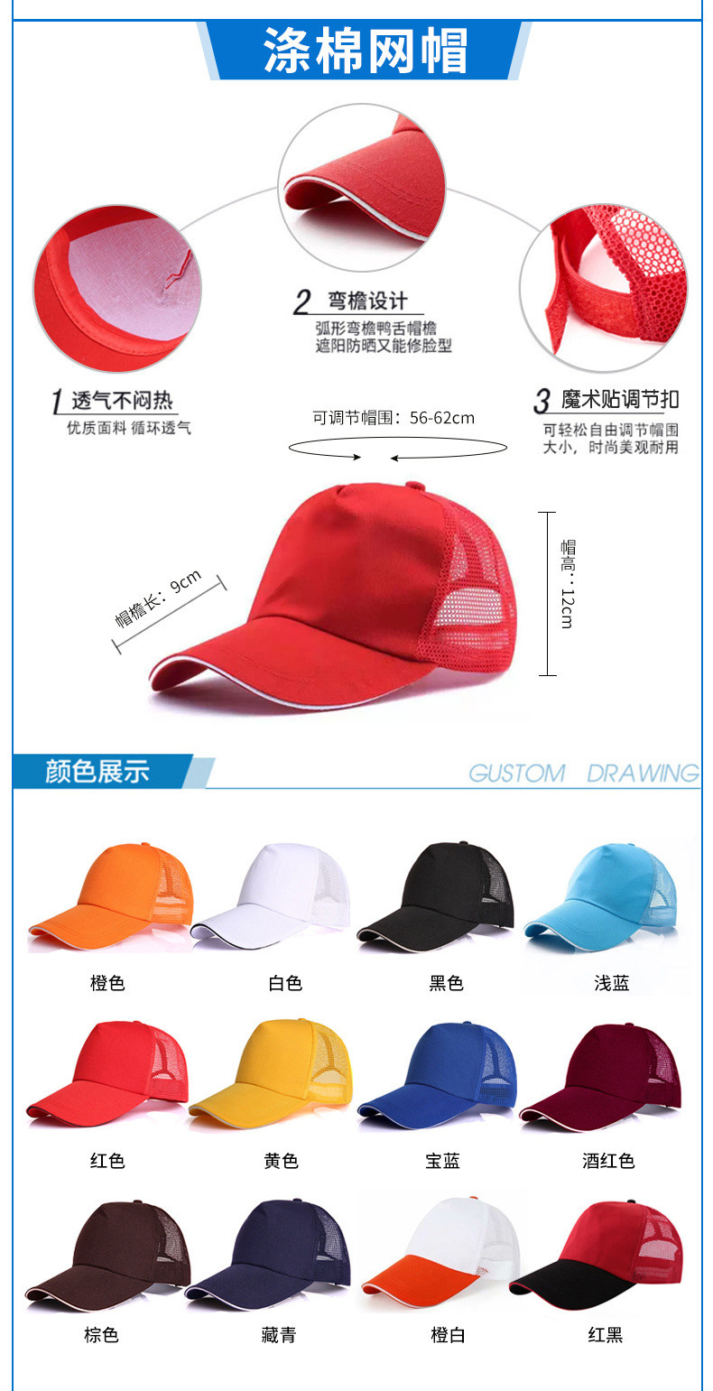 Sombreros publicitarios voluntarios personalizados sombreros de béisbol sombreros de sombreros de trabajo de turismo publicidad impresión de sombreros publicitarios