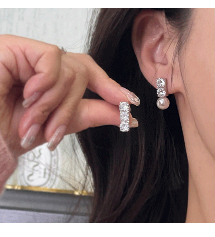 De gama alta de lujo de luz de circón personalizado perla pendientes geométricos de las mujeres no perforadas mosquito bobina oreja clip elegante pendientes de moda
