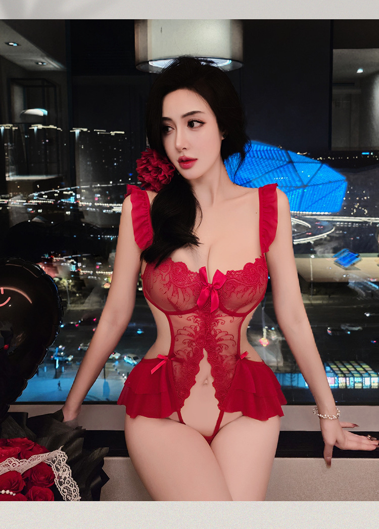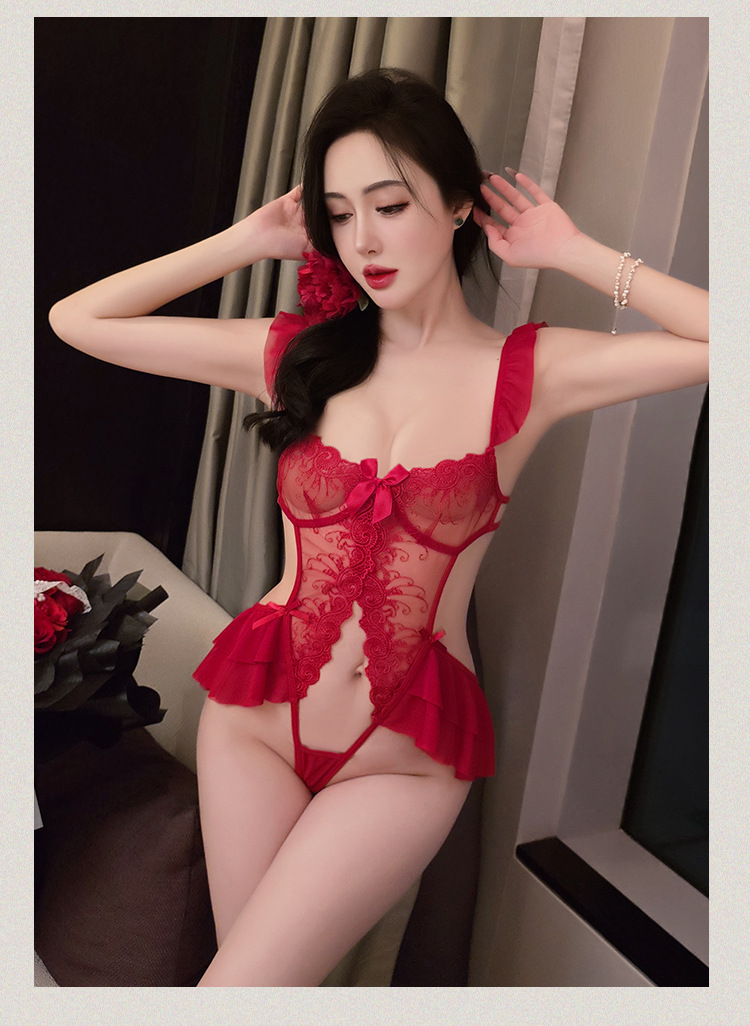 Larga noche lencería sexy sexy encaje bordado mono mujer pijama hueco abierto tentación caliente 2039