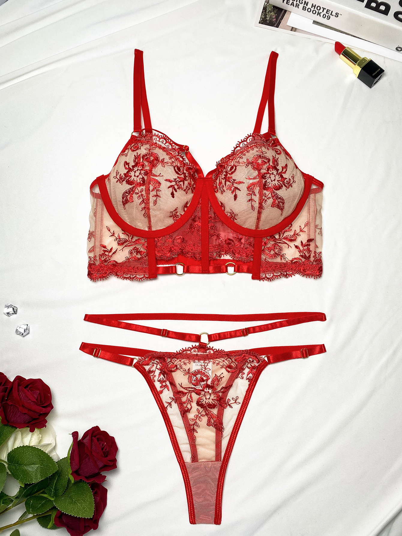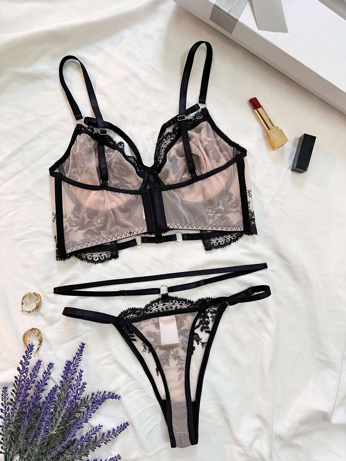 Exportación transfronteriza Conjunto de lencería sexy europea y americana divertido INS moda sexy francés bordado correas de ombligo sexy para mujeres