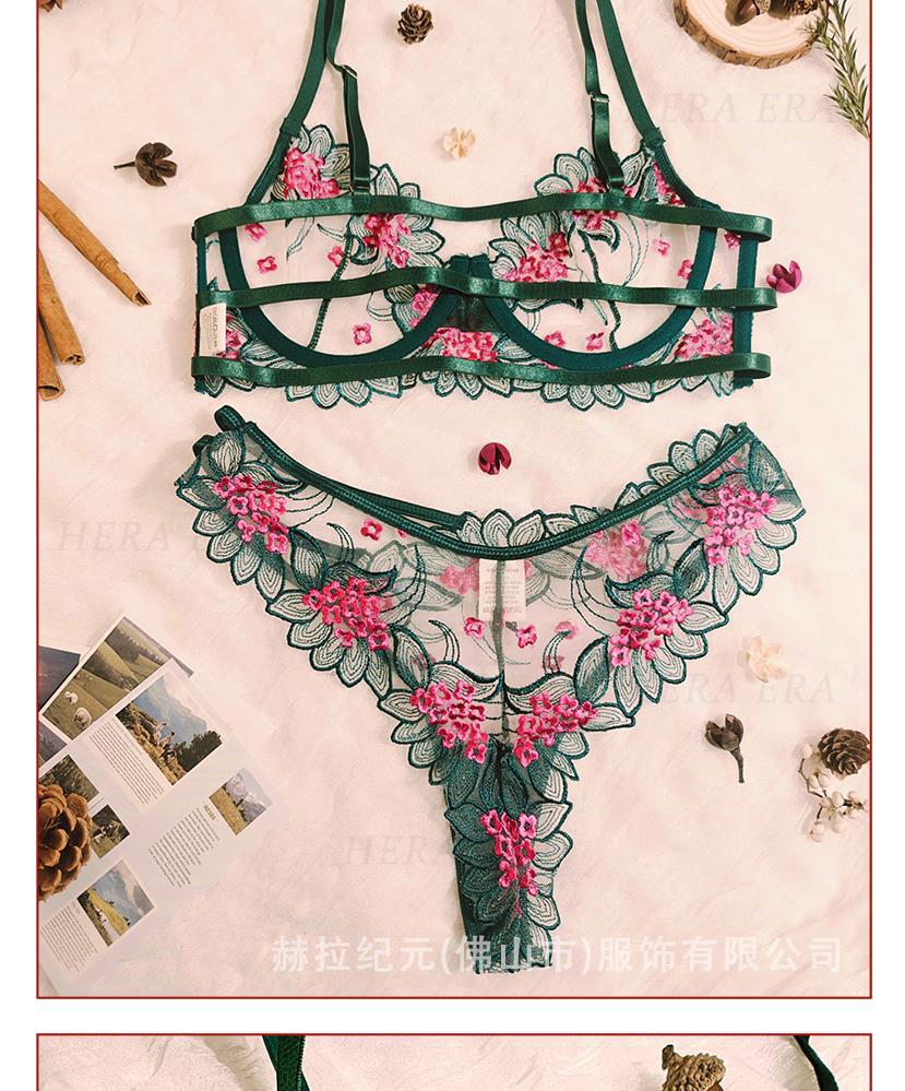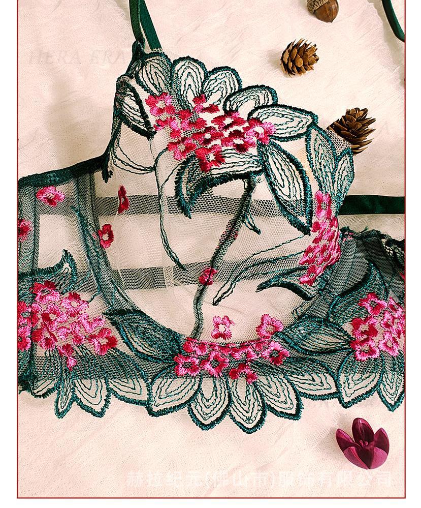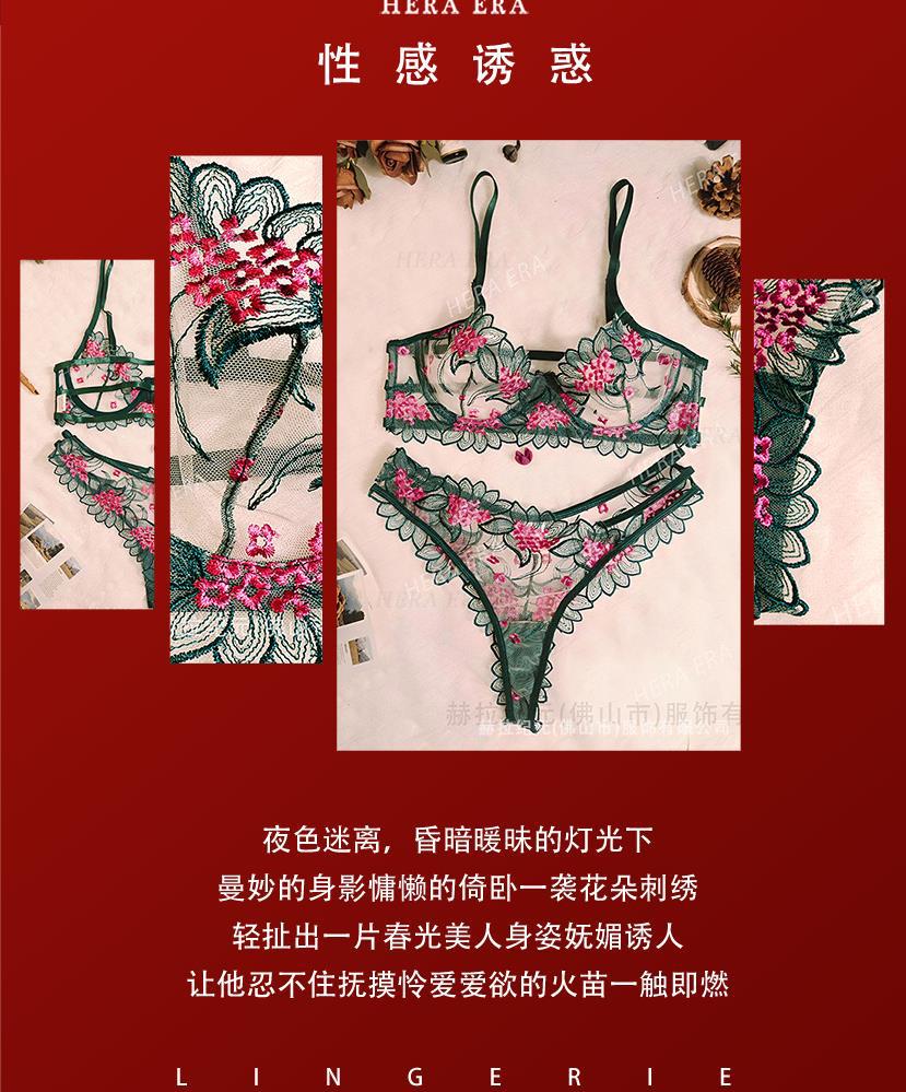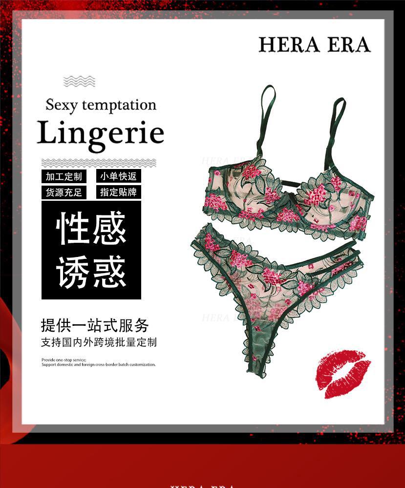 2025 Bordado de comercio exterior transfronterizo Estilo maduro Hilo de red transparente Conjunto de lencería sexy Traje de nuevo estilo transfronterizo para damas