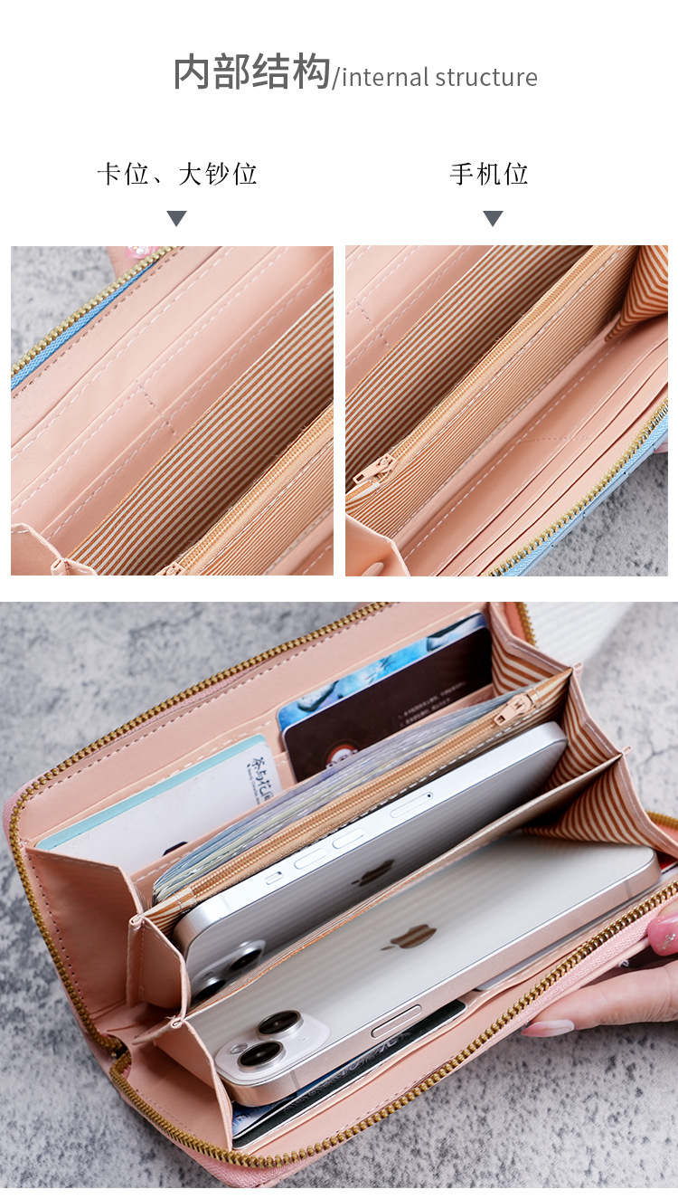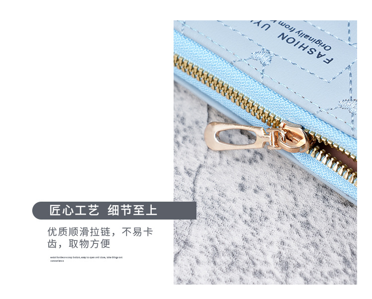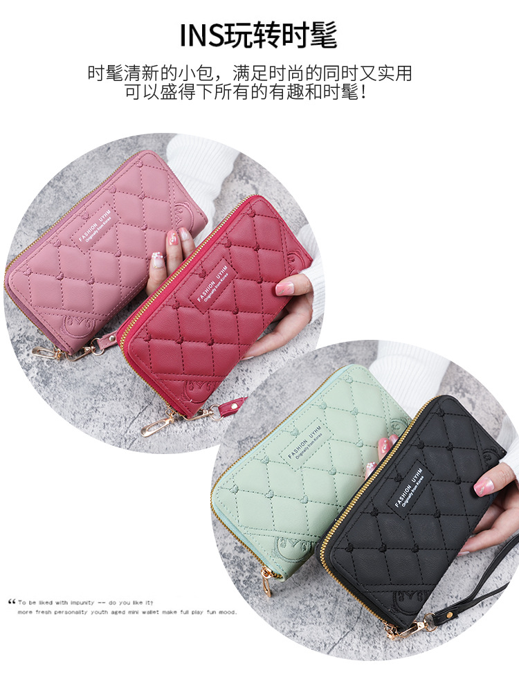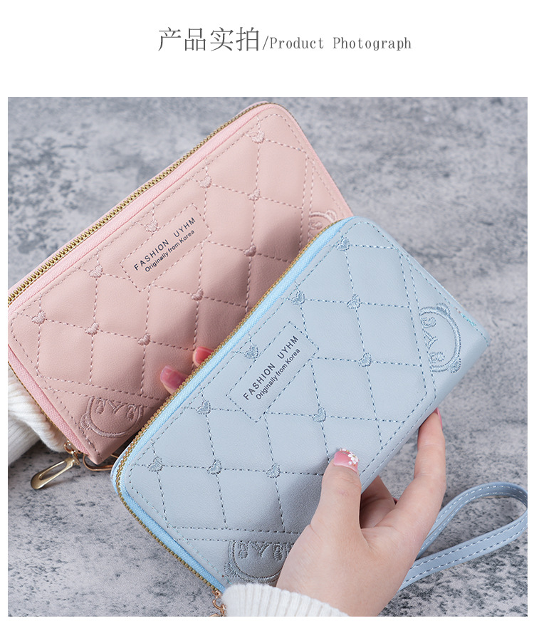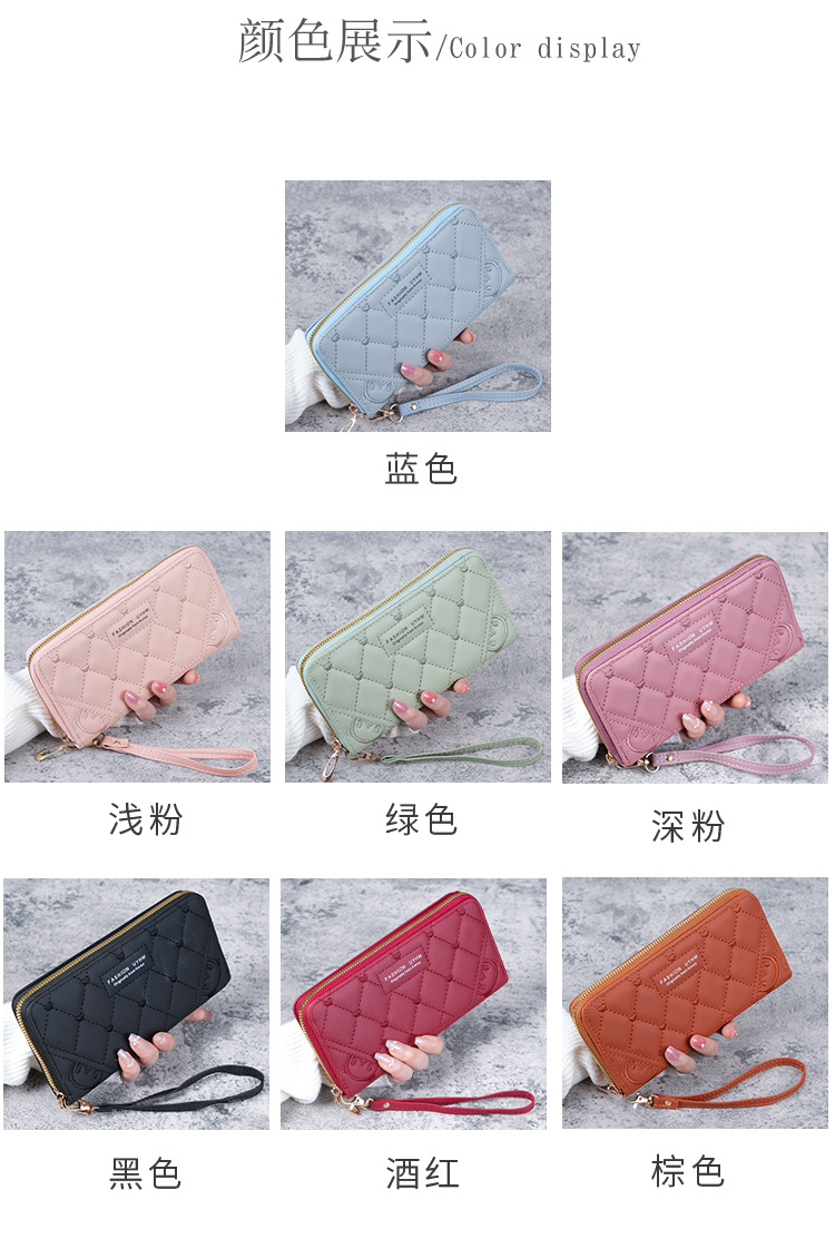 Cartera larga de mujer con cremallera única, bordado de color sólido, bolso embrague multifuncional de gran capacidad para teléfono móvil