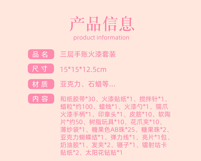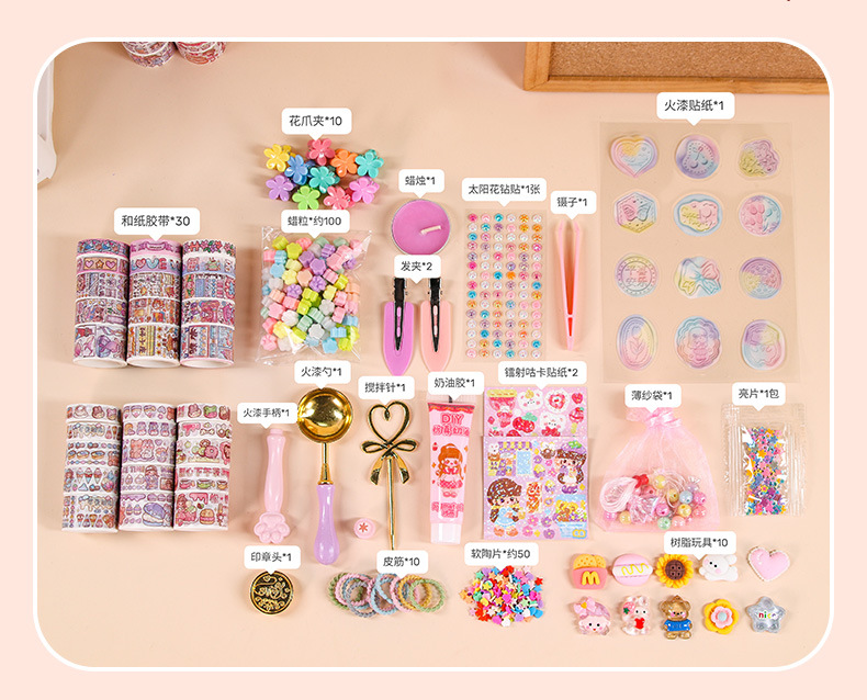 Cuenta de mano de tres capas traje de pintura de fuego para niños Almacenamiento de juguetes para niñas vela de grano de cera Goka cuenta de mano DIY conjunto completo caja de regalo