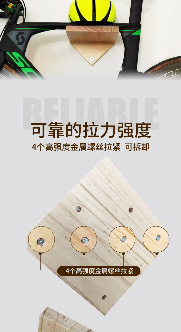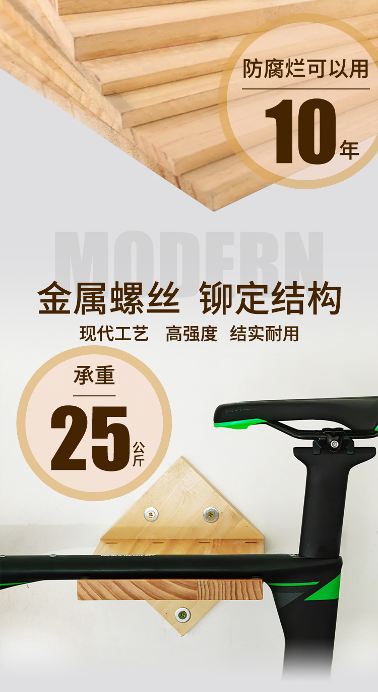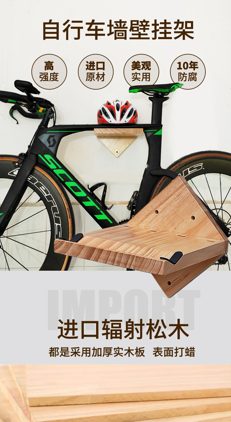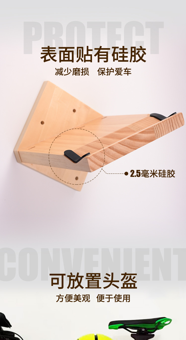 Estante de pared de bicicleta gancho de madera maciza carretera coche montado en la pared vertical estante de estacionamiento soporte de exhibición