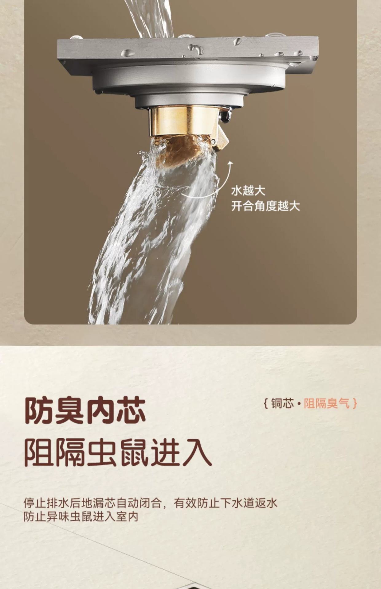 Desagüe de piso de cobre estilo crema baño balcón lavadora Desagüe de piso de cobre anti-desbordamiento anti-olor fabricante de desagüe de piso