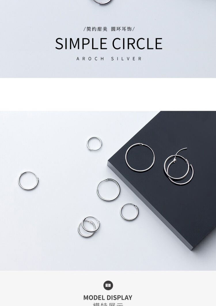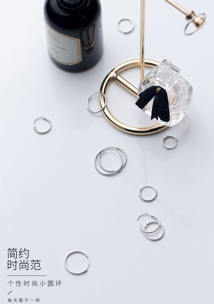 S925 plata esterlina 1.2mm1.5mm diámetro de alambre grandes aretes temperamento versátil mini anillo pendientes de orejas G0083