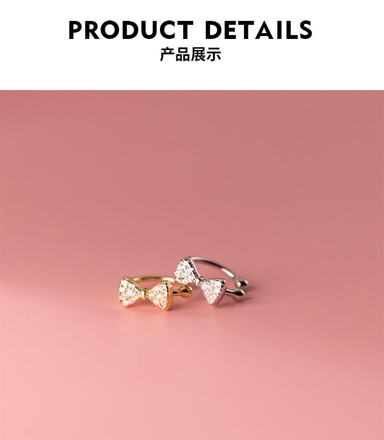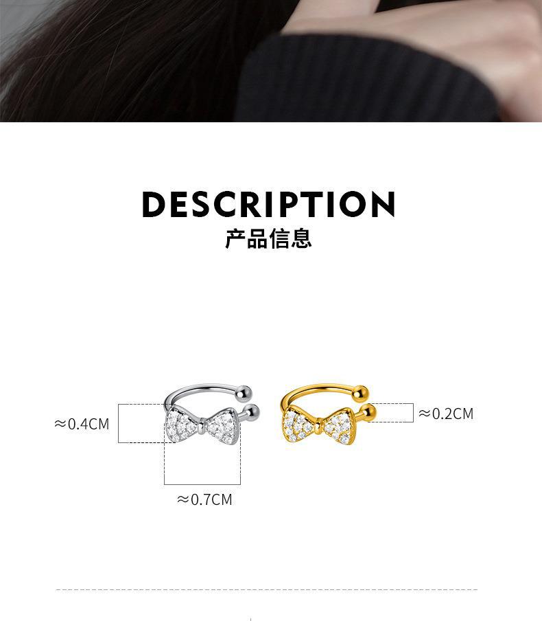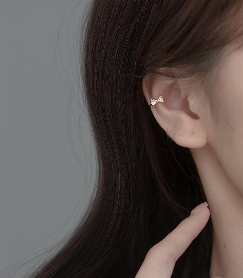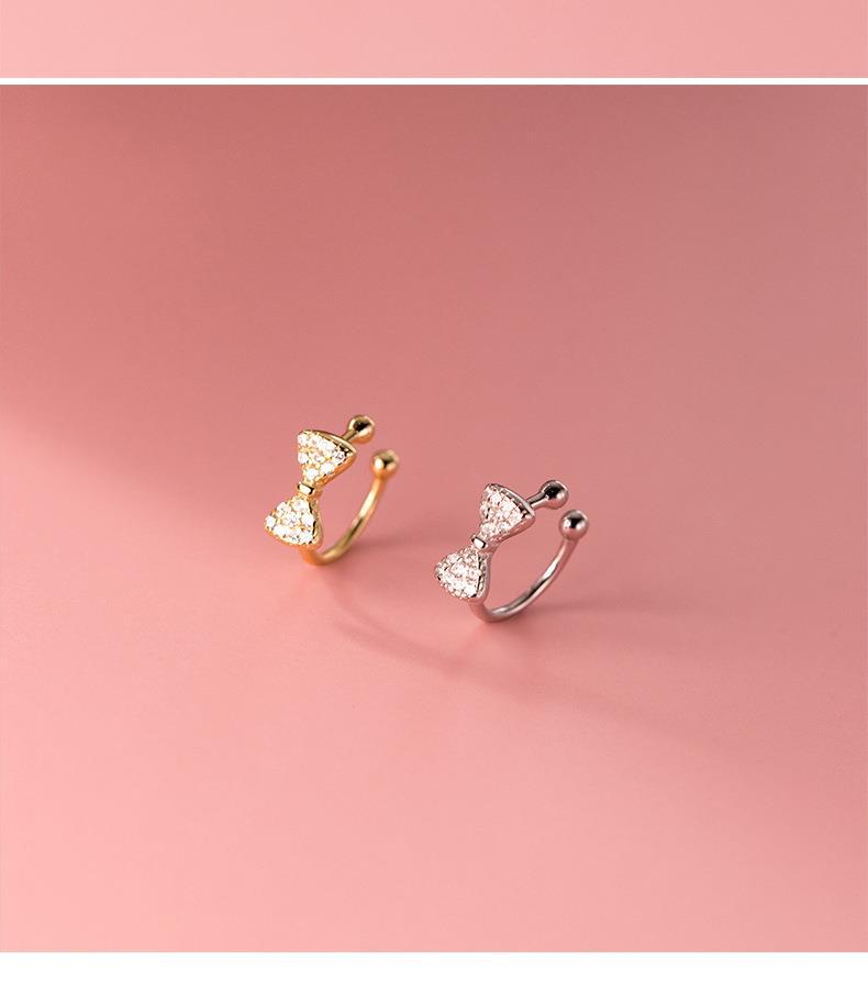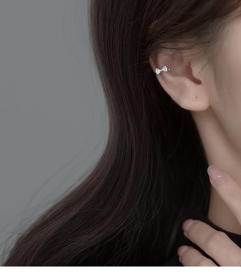 Eloch s925 plata pequeña fresca sin agujeros de orejas estudiantes arco de diamante orejas simple orejas de mujer M01050