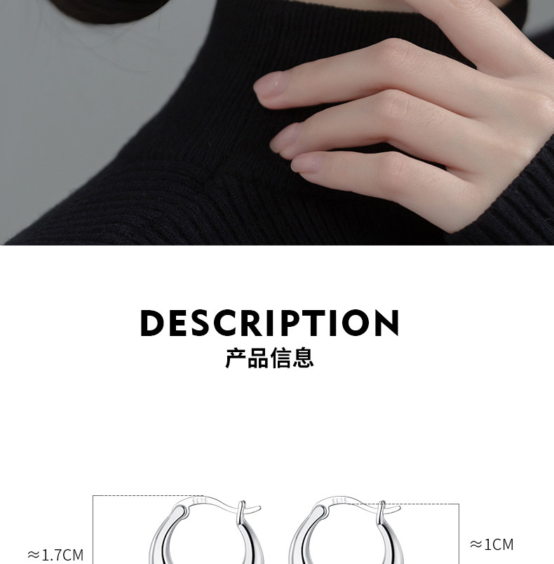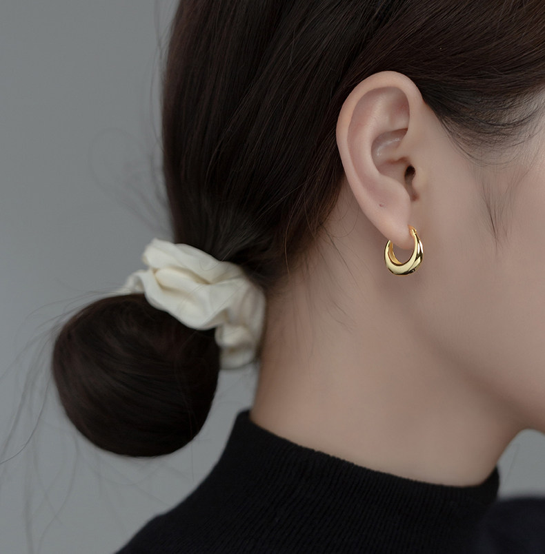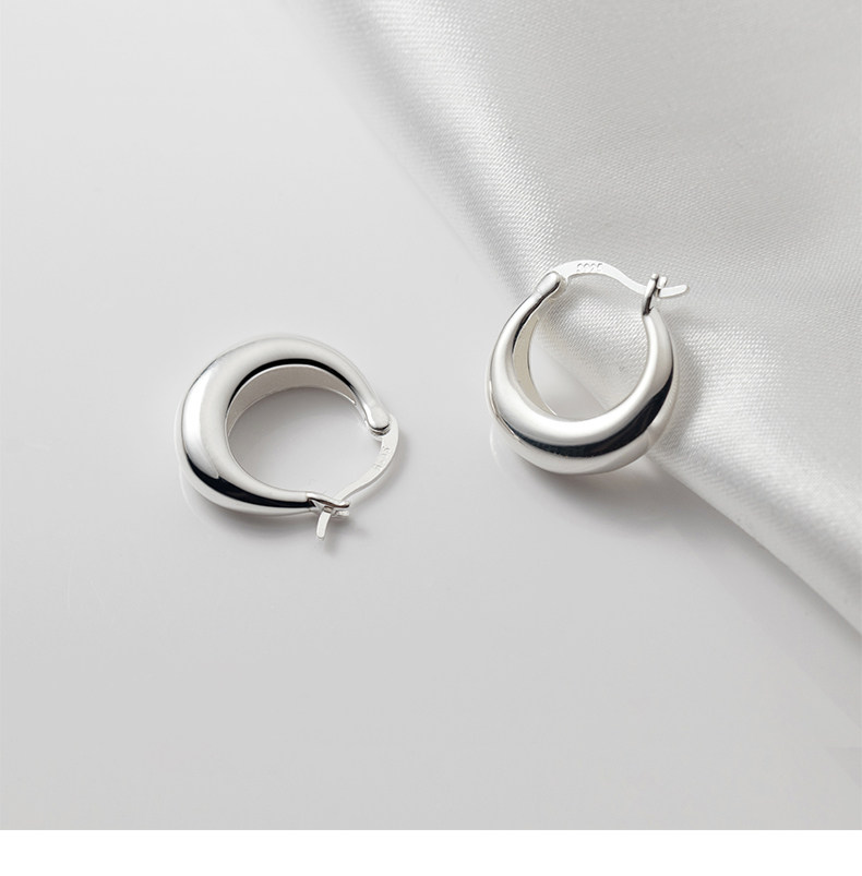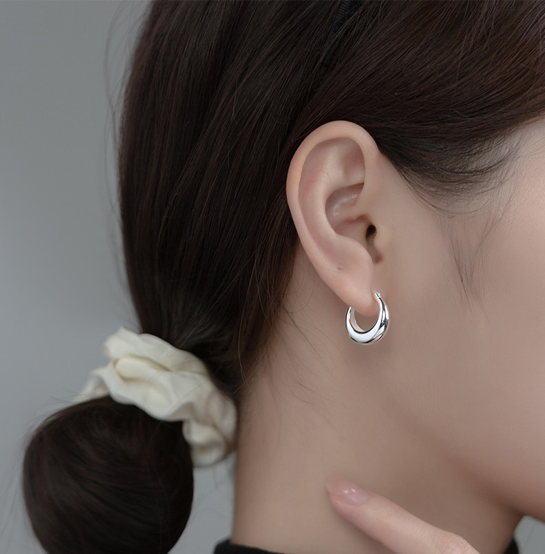 S925 plata industria pesada gotas de agua botones de orejas redondas INS nicho simple curvo botón aretes de orejas M01021