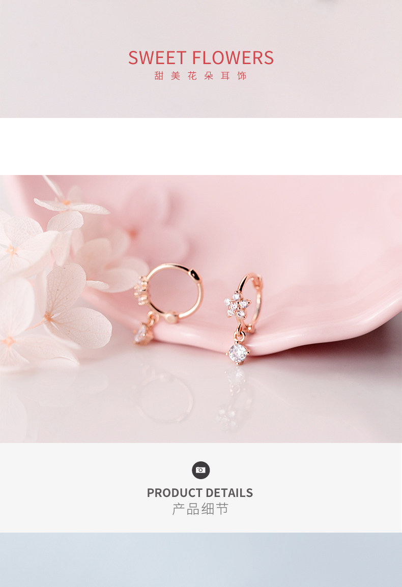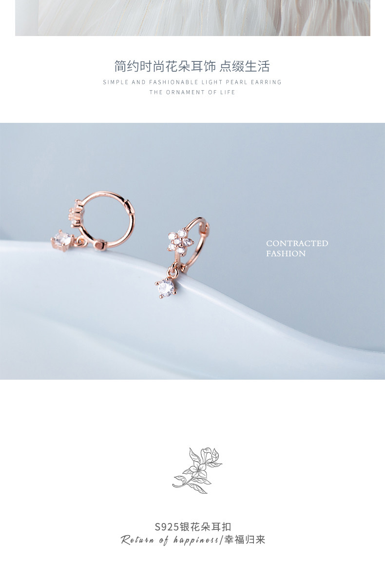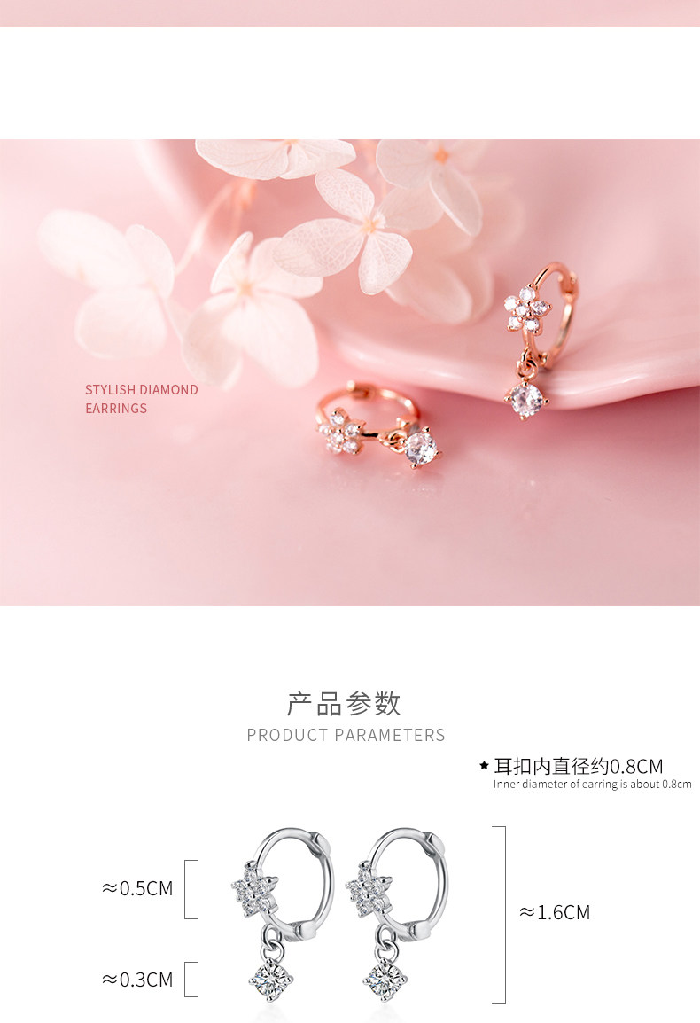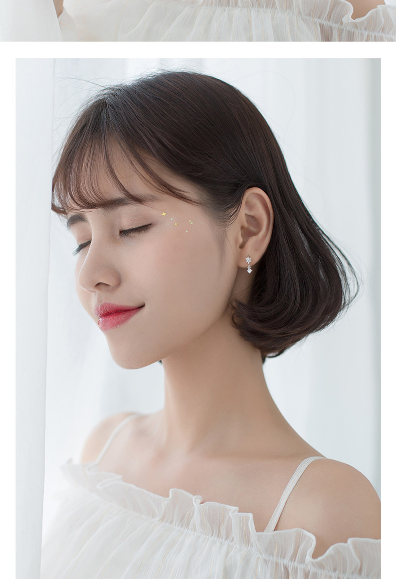 S925 pendientes de plata para mujeres coreanas personalidad simple pequeño diamante fresco de cinco flores pendientes temperamento pendientes G2312