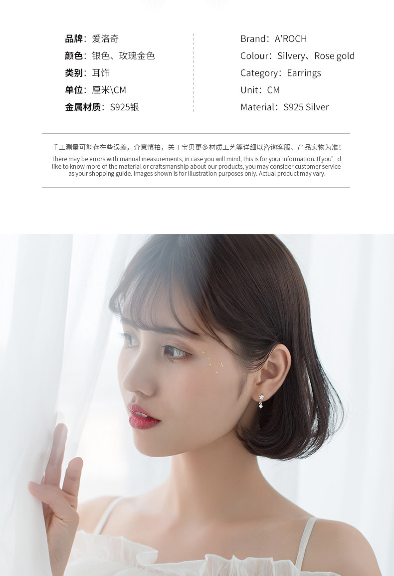 | Color | S925 plata por un par de plata, S925 plata por un par de rosas doradas |
