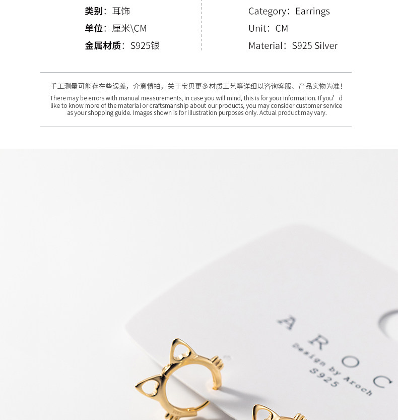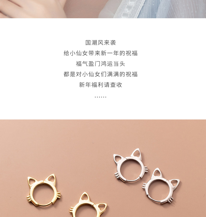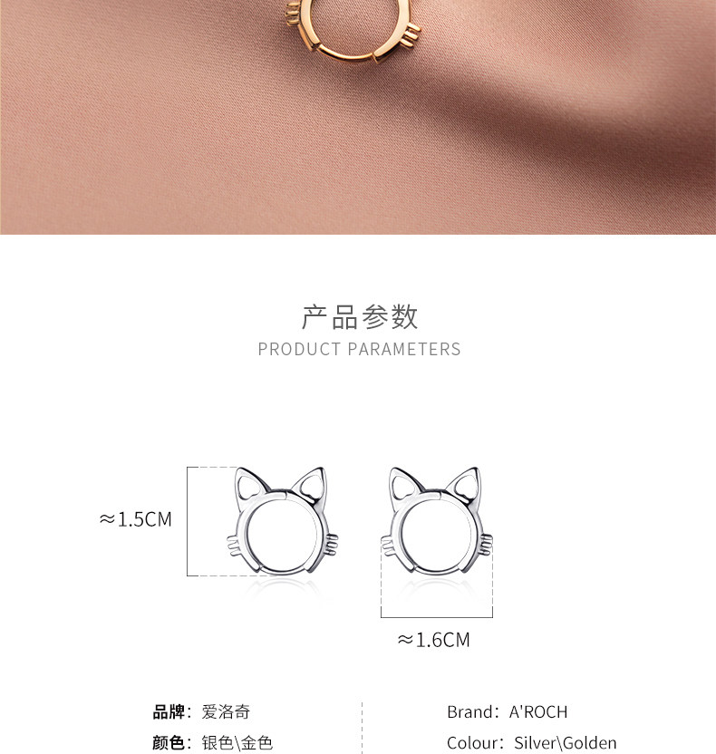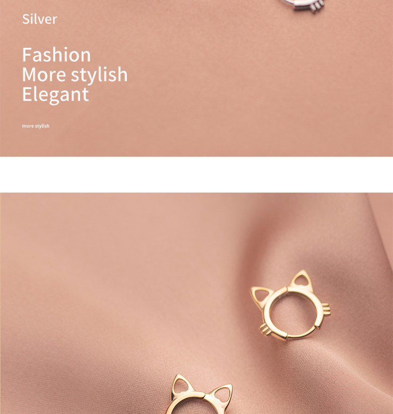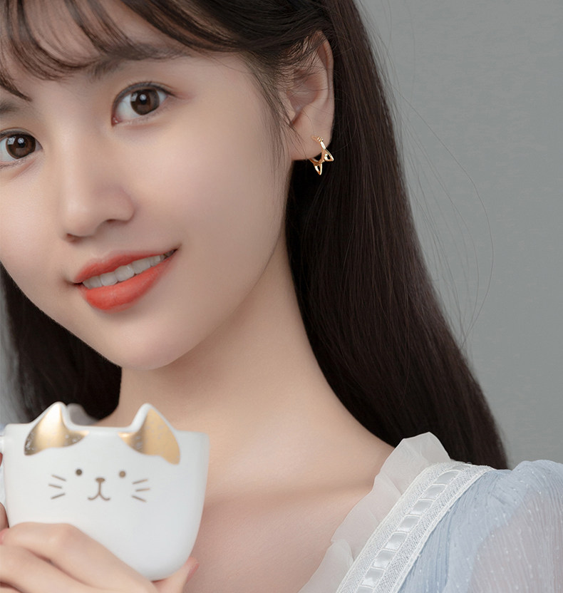 Eloch s925 plata adornos huecos orejas de gato corto pernos de orejas de verano coreano joyas de orejas dulces G9806