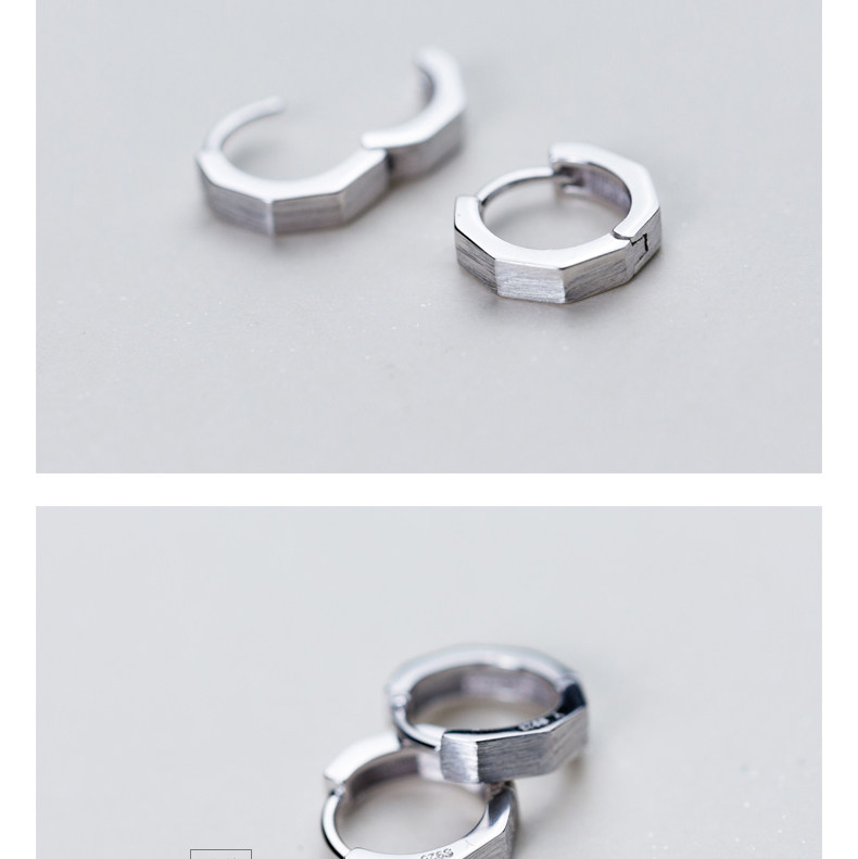 S925 Pendientes de plata Mujer Simple Personalidad Coreano Anillo Corte Orejas Temperamento Hebilla Pendientes de pareja cepillado E5622