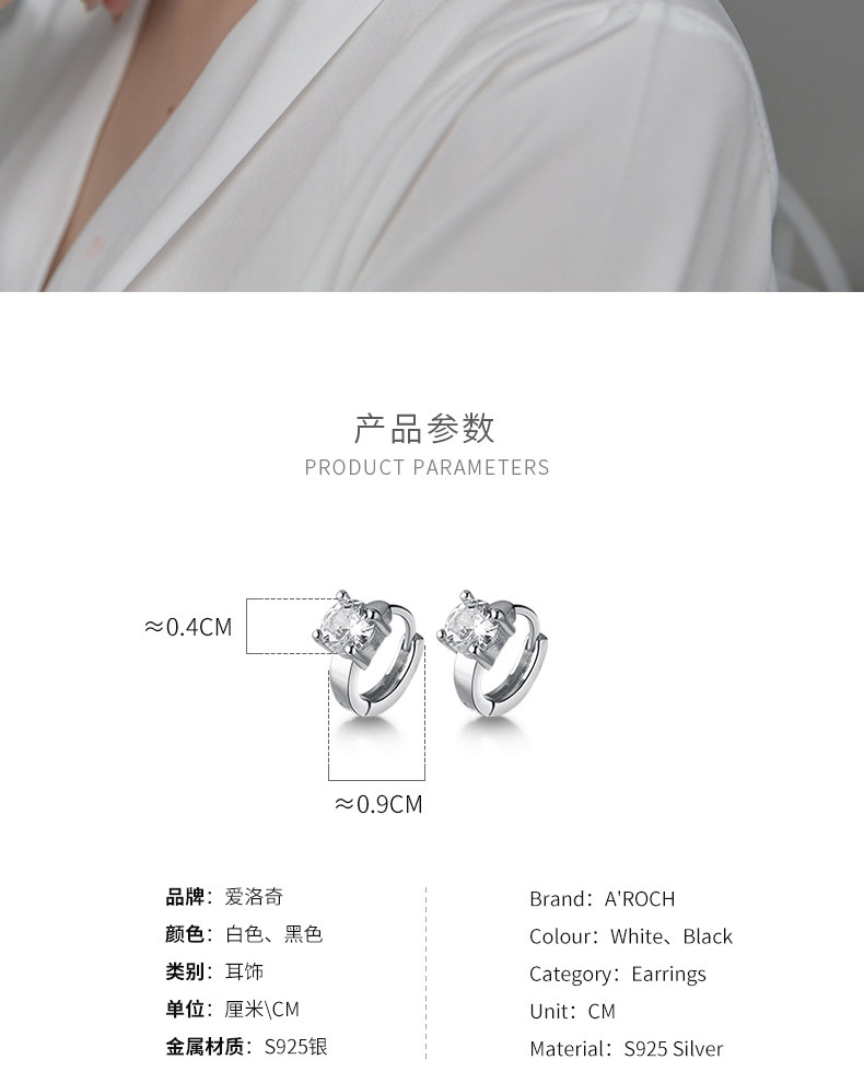 | Color | S925 plata un par blanco, S925 plata un par negro |
